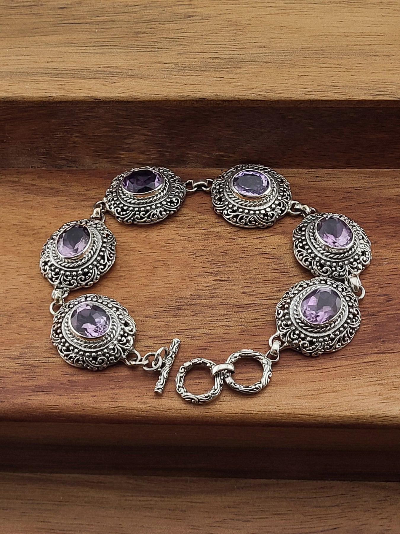 925 Sterling Silver Bracelet w/ Natural Amethyst