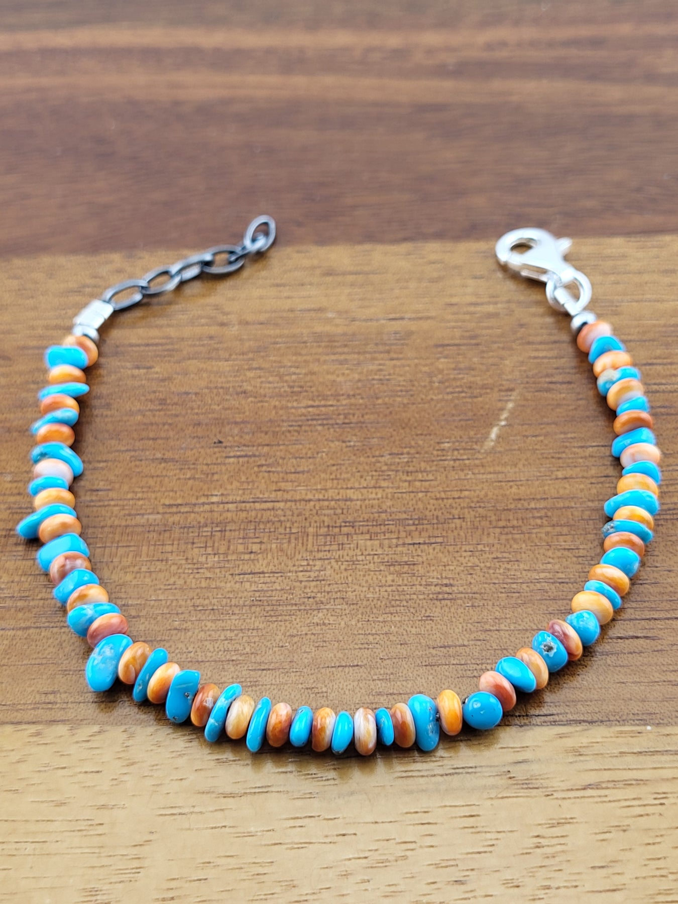 925 Sterling Silver Turquoise & Spiny Oyster Bracelet