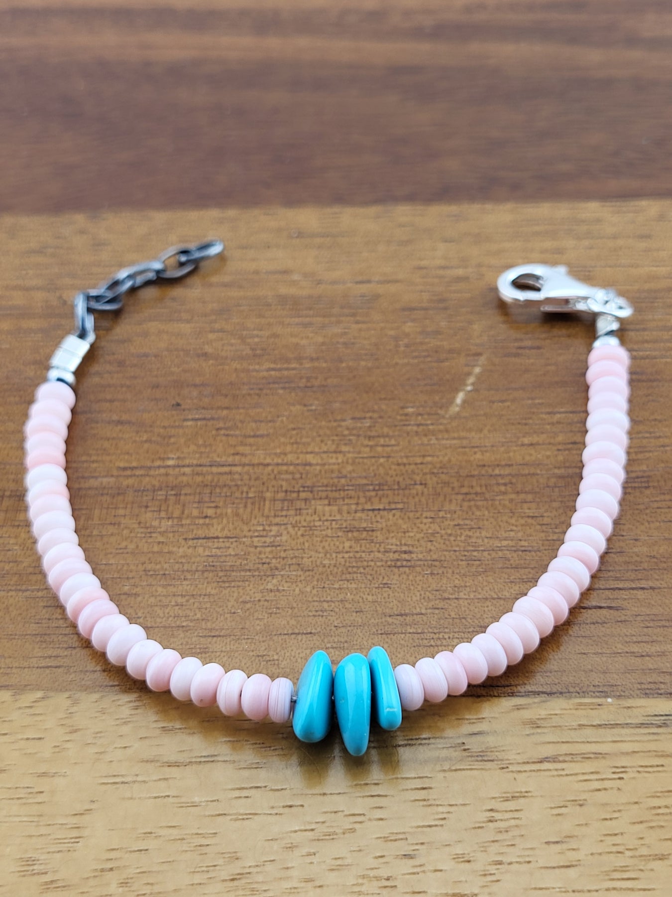 925 Sterling Silver Turquoise & Queen Conch Bracelet