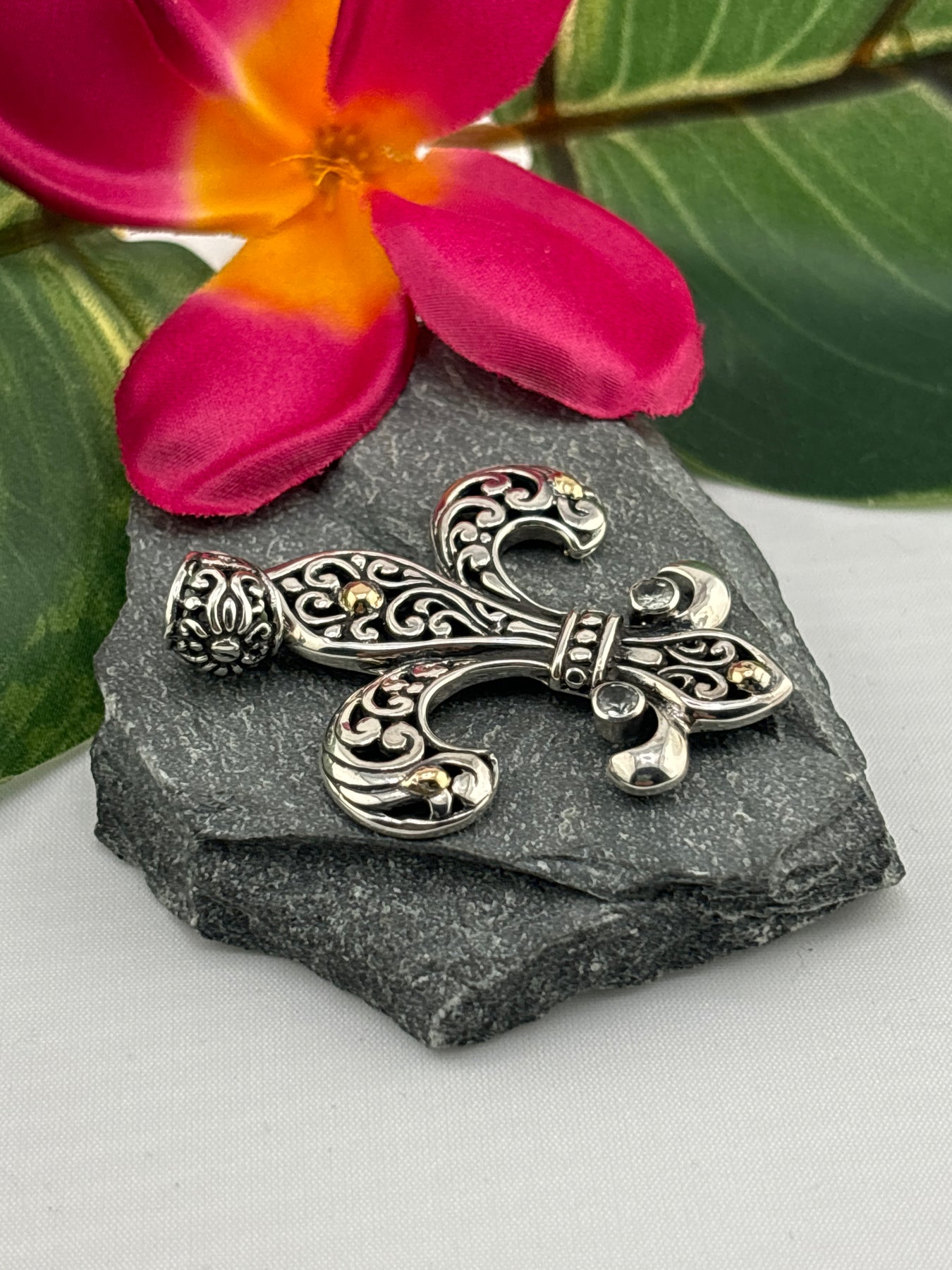 Aquamarine/18k accented Flour-de-lis Pendant