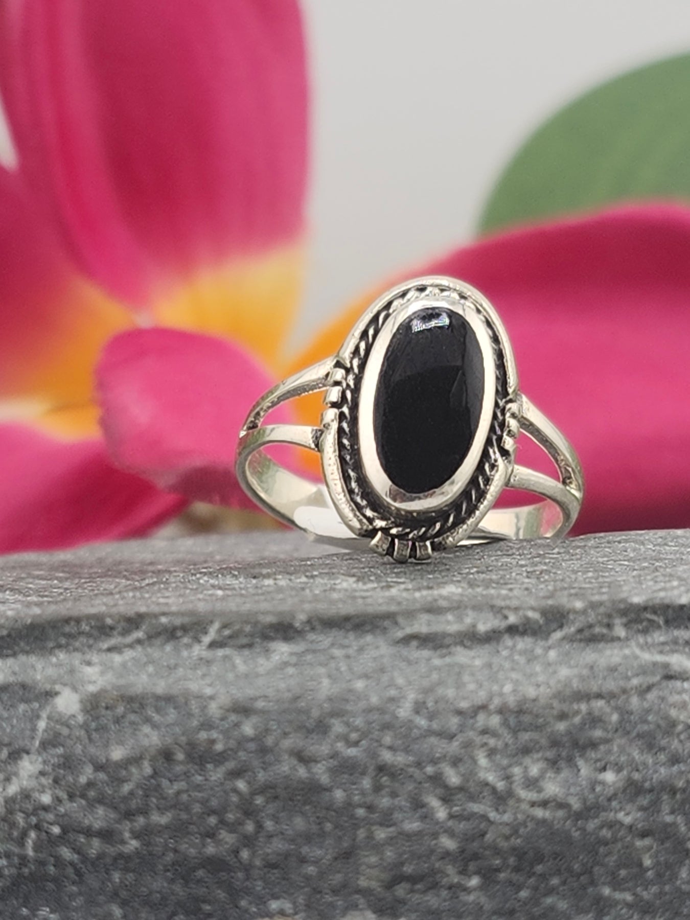 Black Onyx & 925 Sterling Silver Ring Size 6