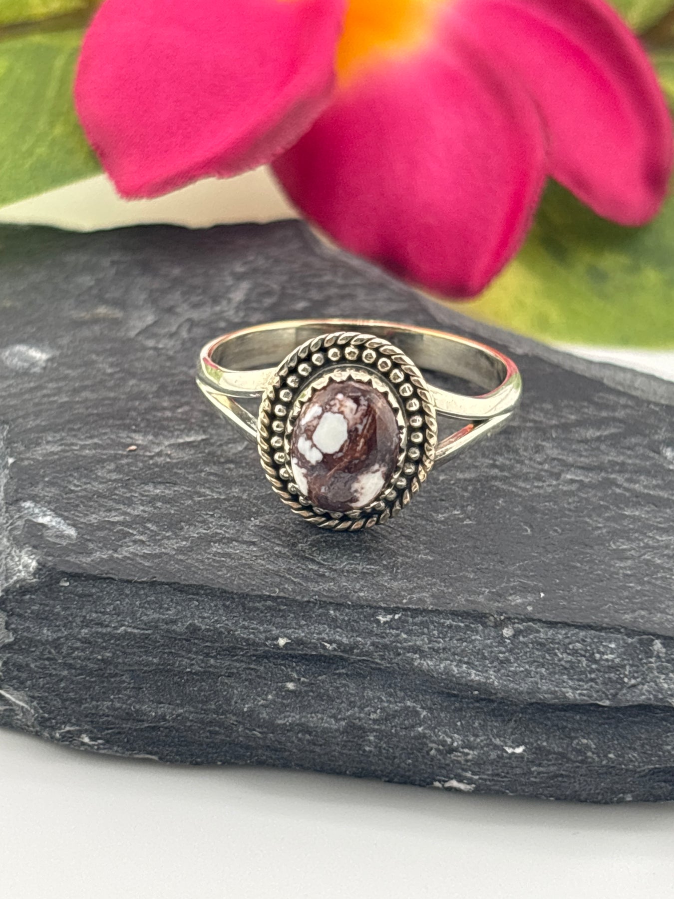 Round Wild Horse Jasper and 925 Sterling Silver Ring Size 11