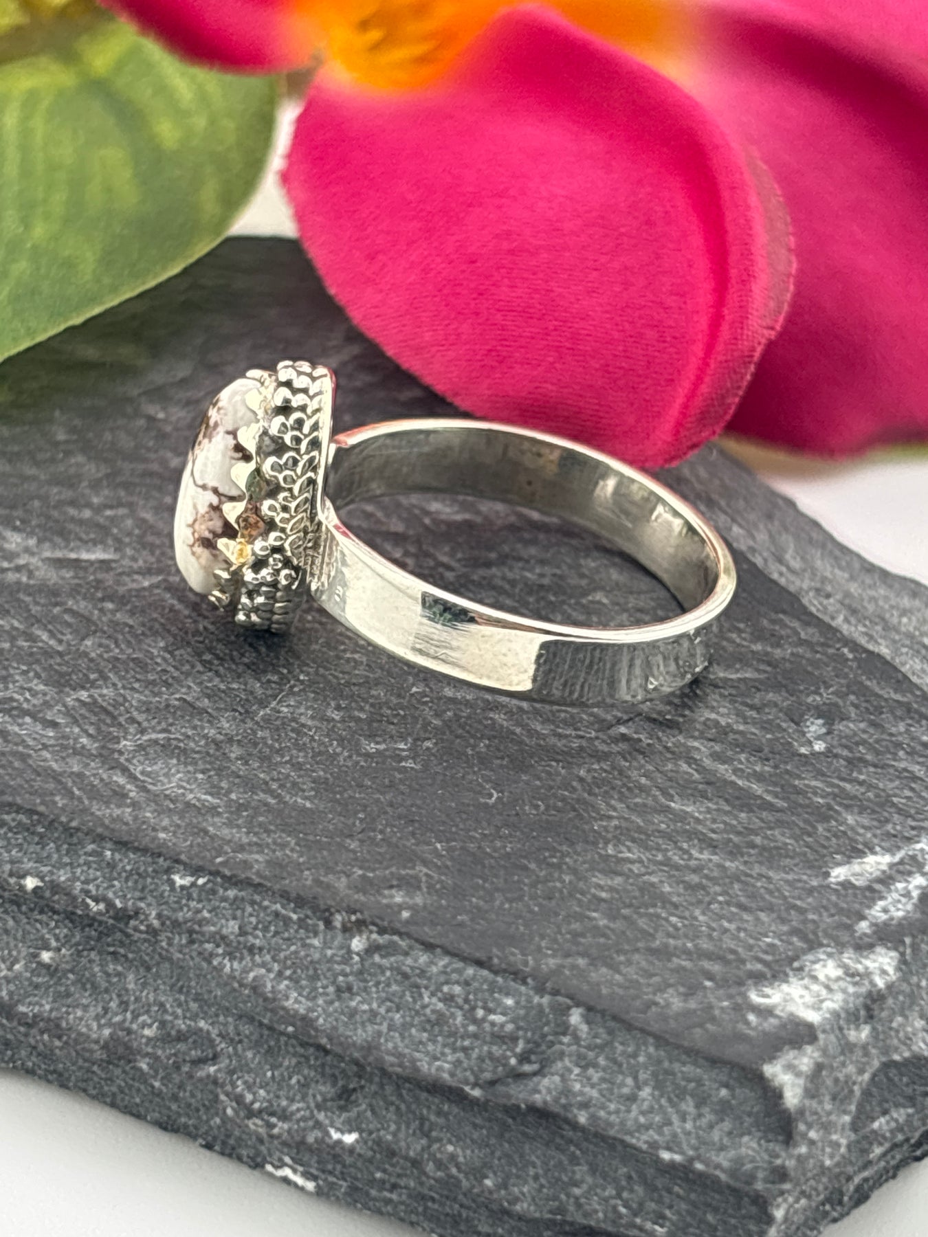 Teardrop Wild Horse Jasper and 925 Sterling Silver Ring Size 7