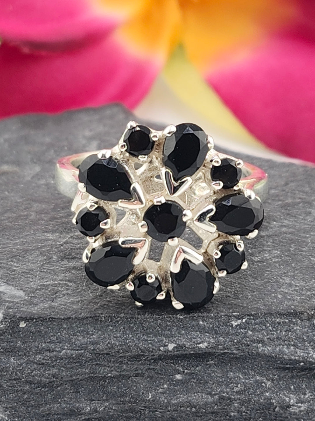 Cluster Black Onyx Ring Size 10