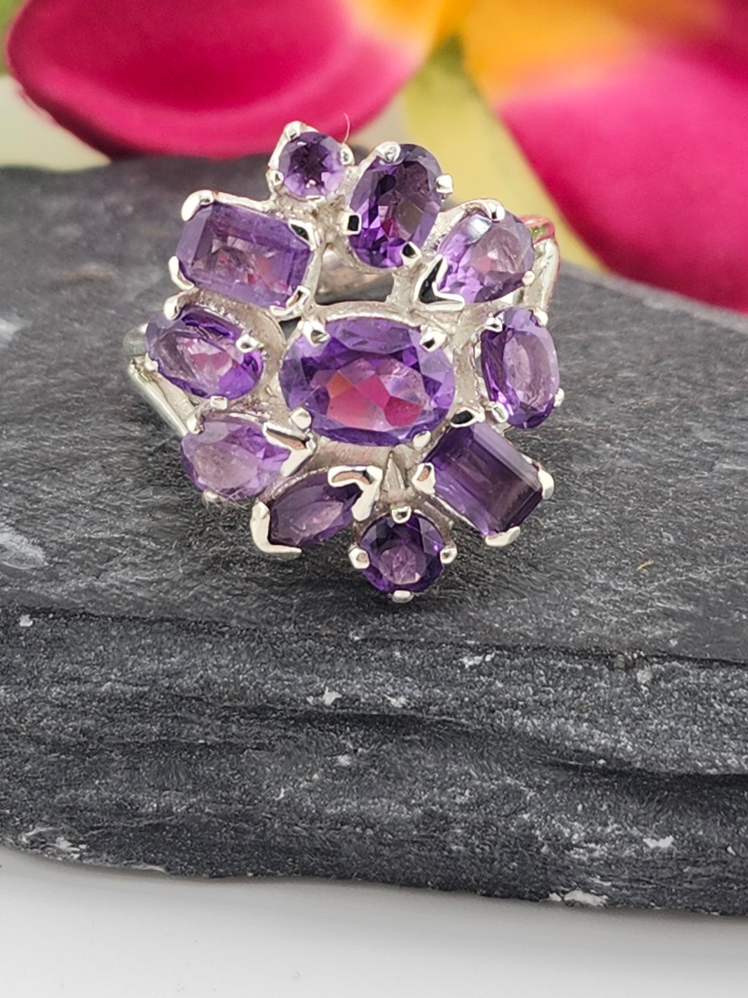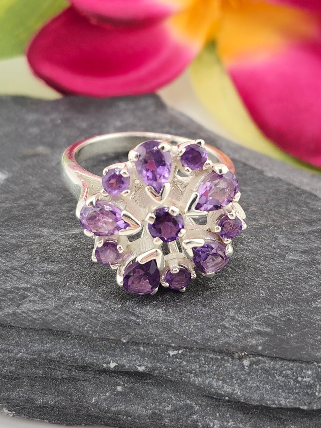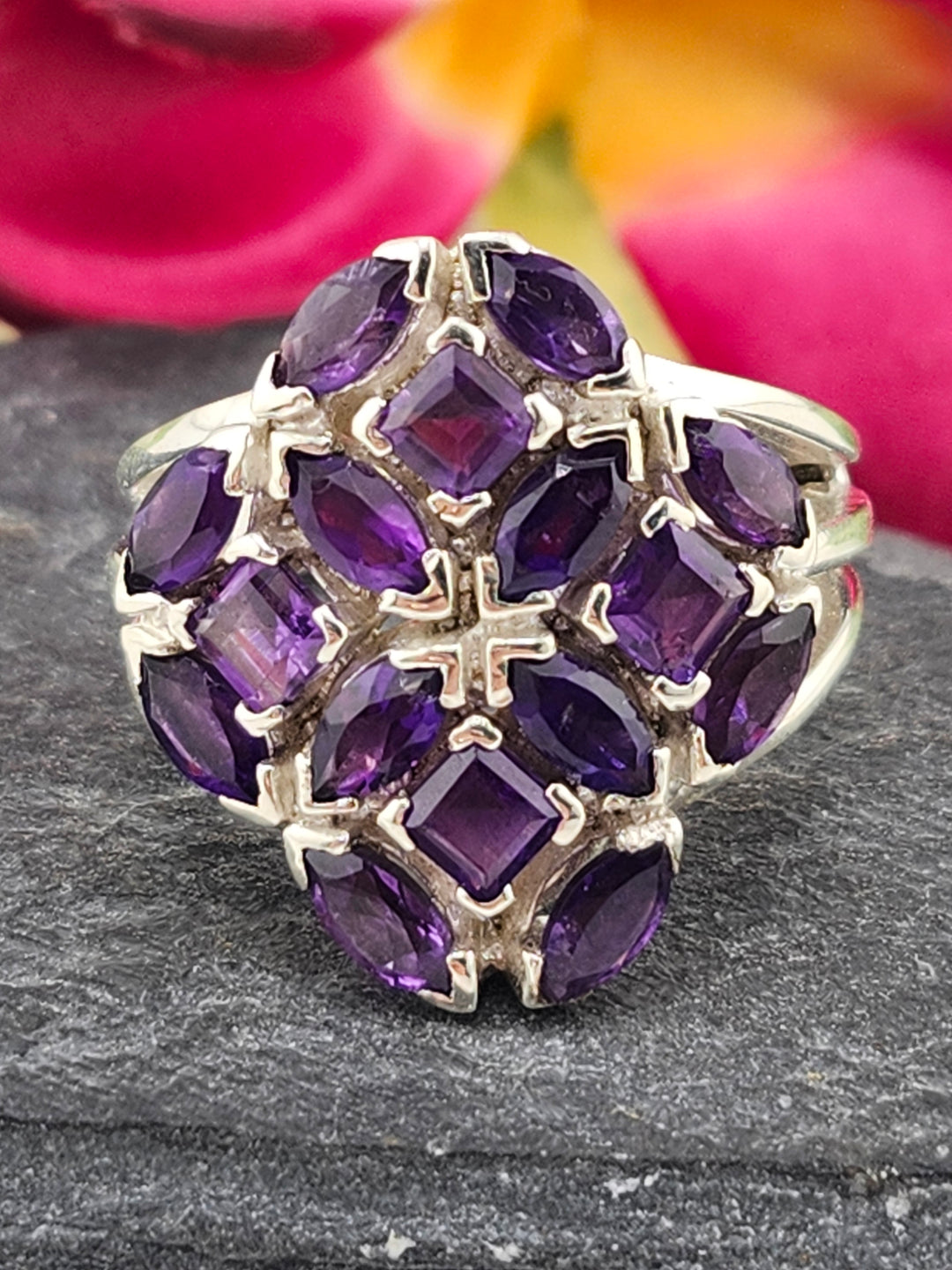 Cluster Amethyst Flower Ring Size 9