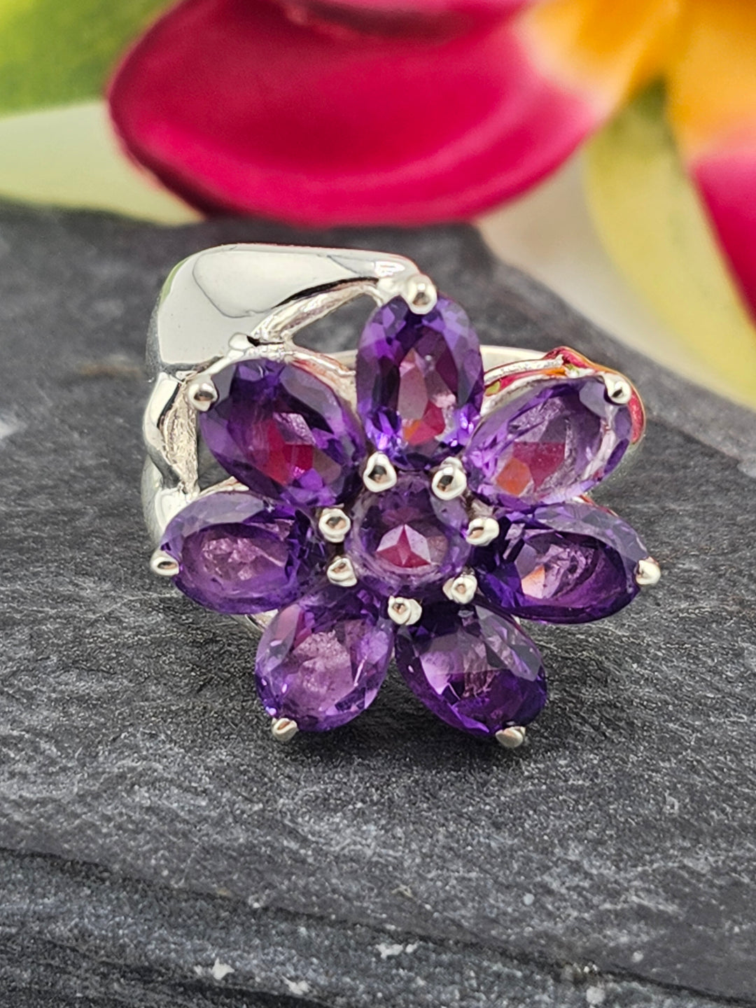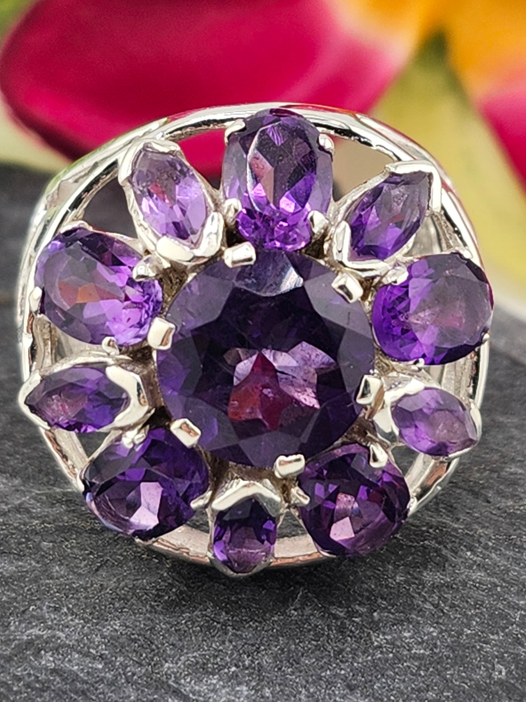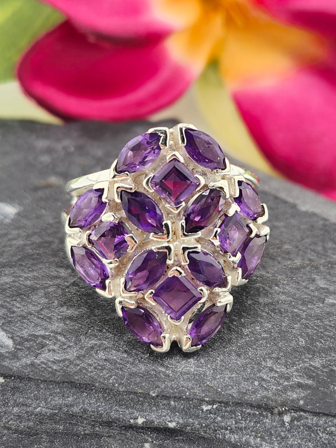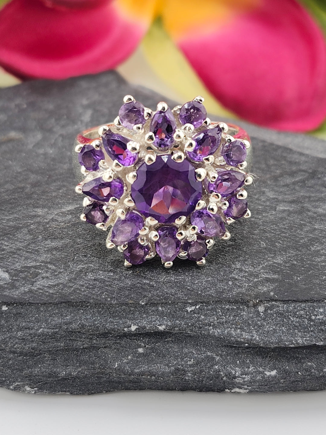 Cluster Amethyst Flower Ring Size 9