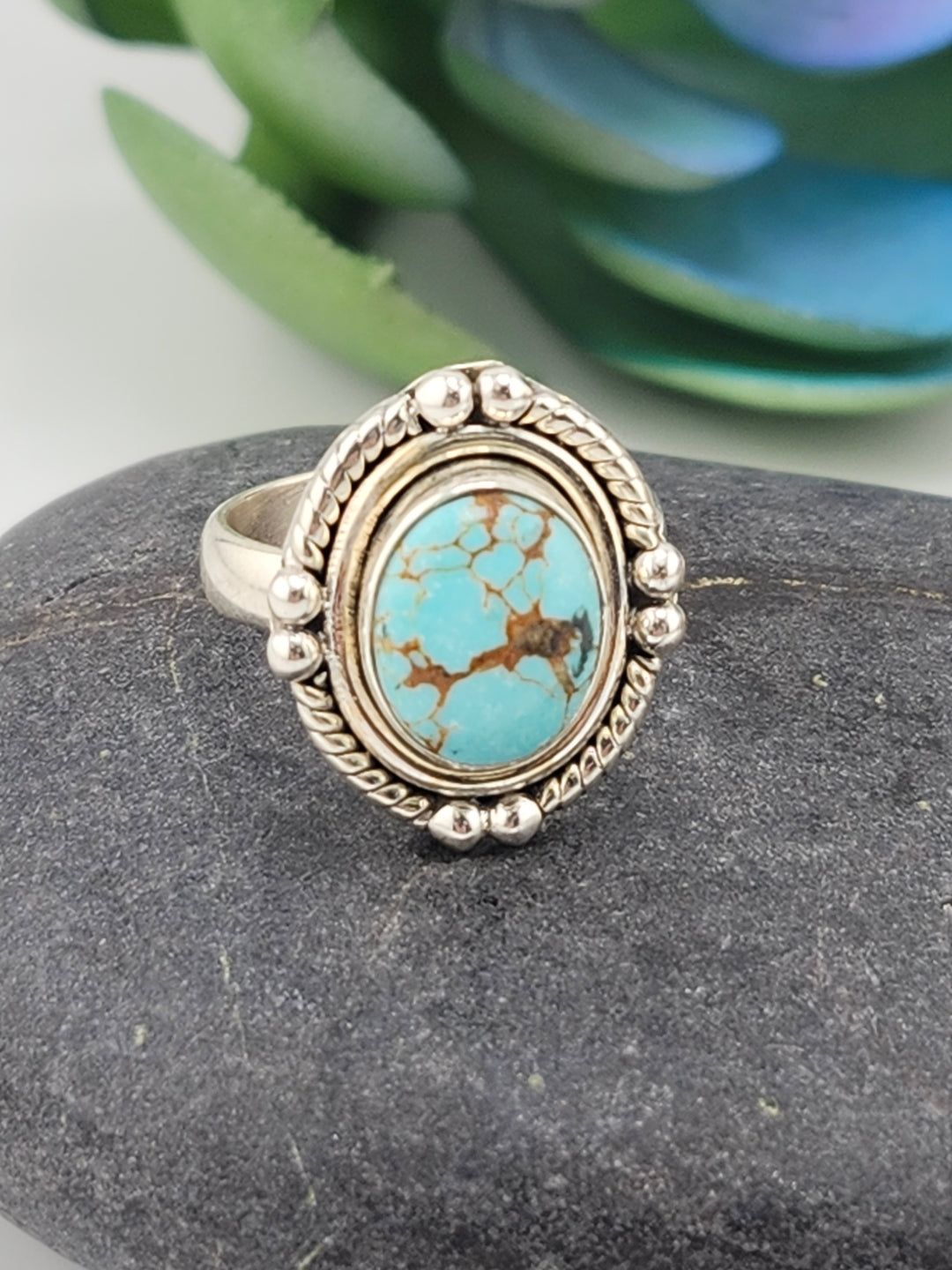 Kingman Turquoise and 925 Sterling Silver Ring - Size 7