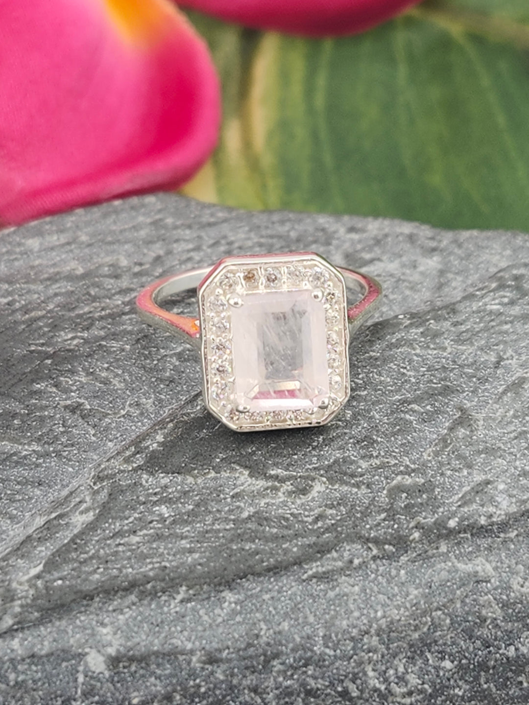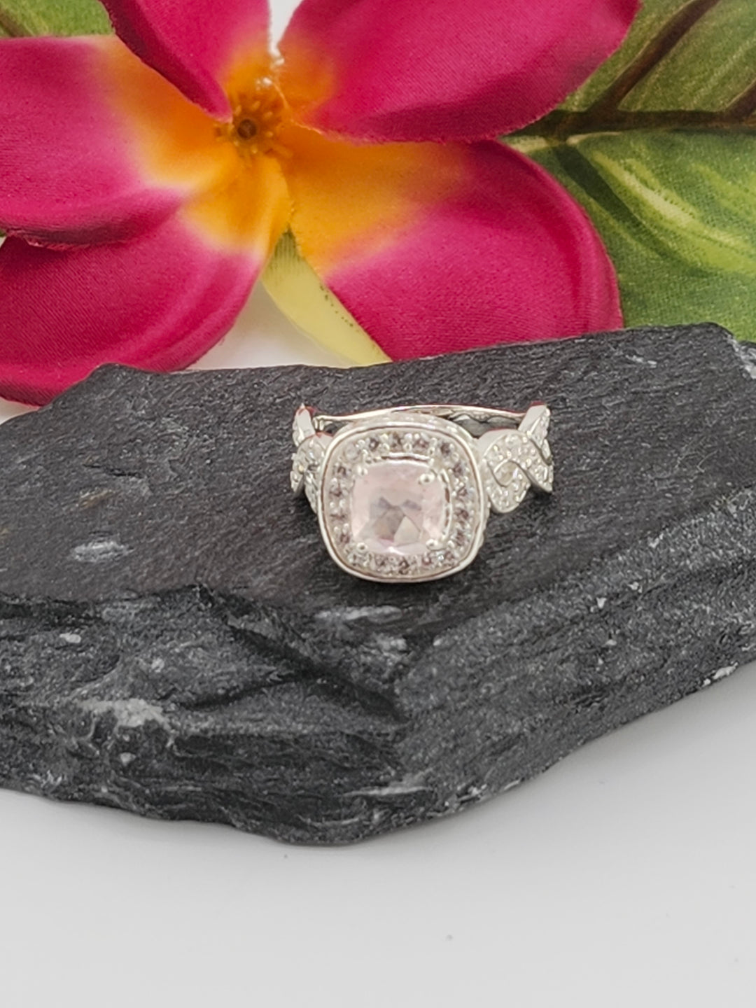 Morganite/Cubic Zirconia 925 Sterling Silver Ring - Size 8
