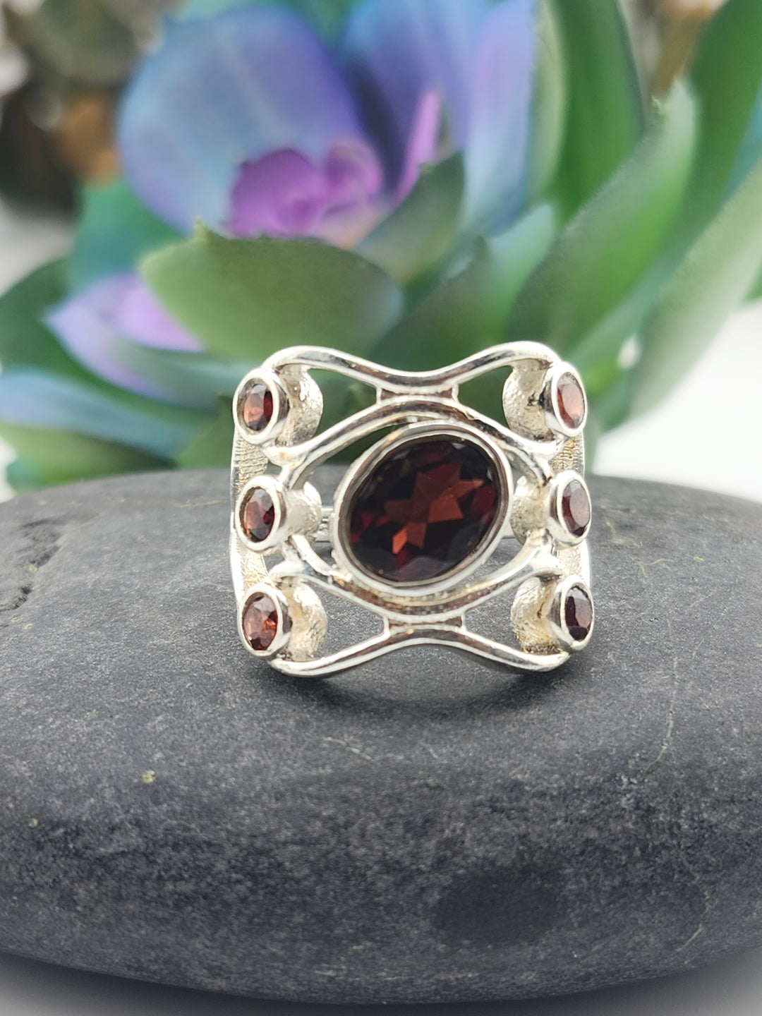 Multistone Garnet Ring & 925 Sterling Silver Ring Size 7