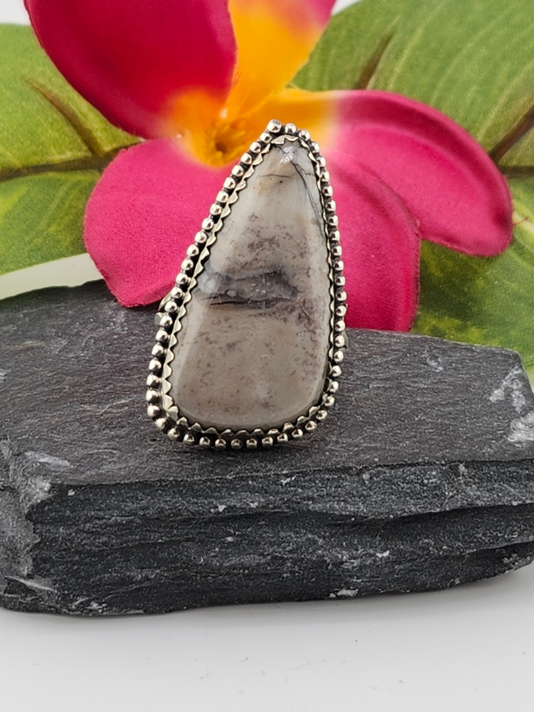 Mushroom Jasper & 925 Sterling Silver Ring Size 8