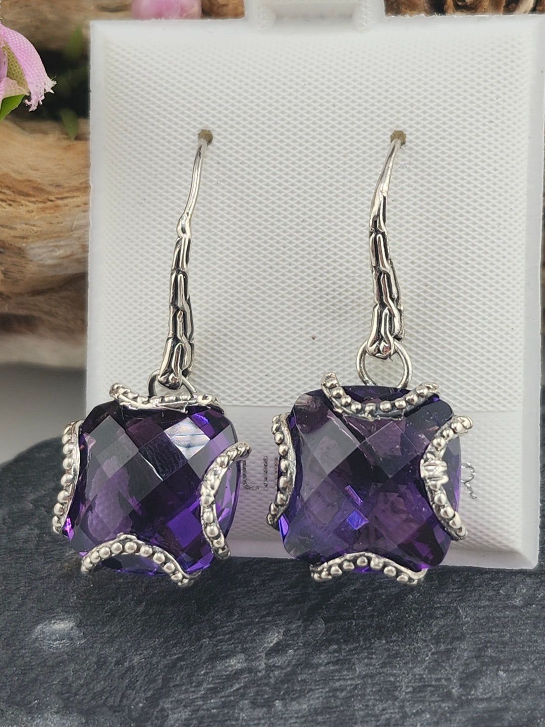 925 Sterling Silver 7'-8' Bali Bracelet w/ Natural Amethyst