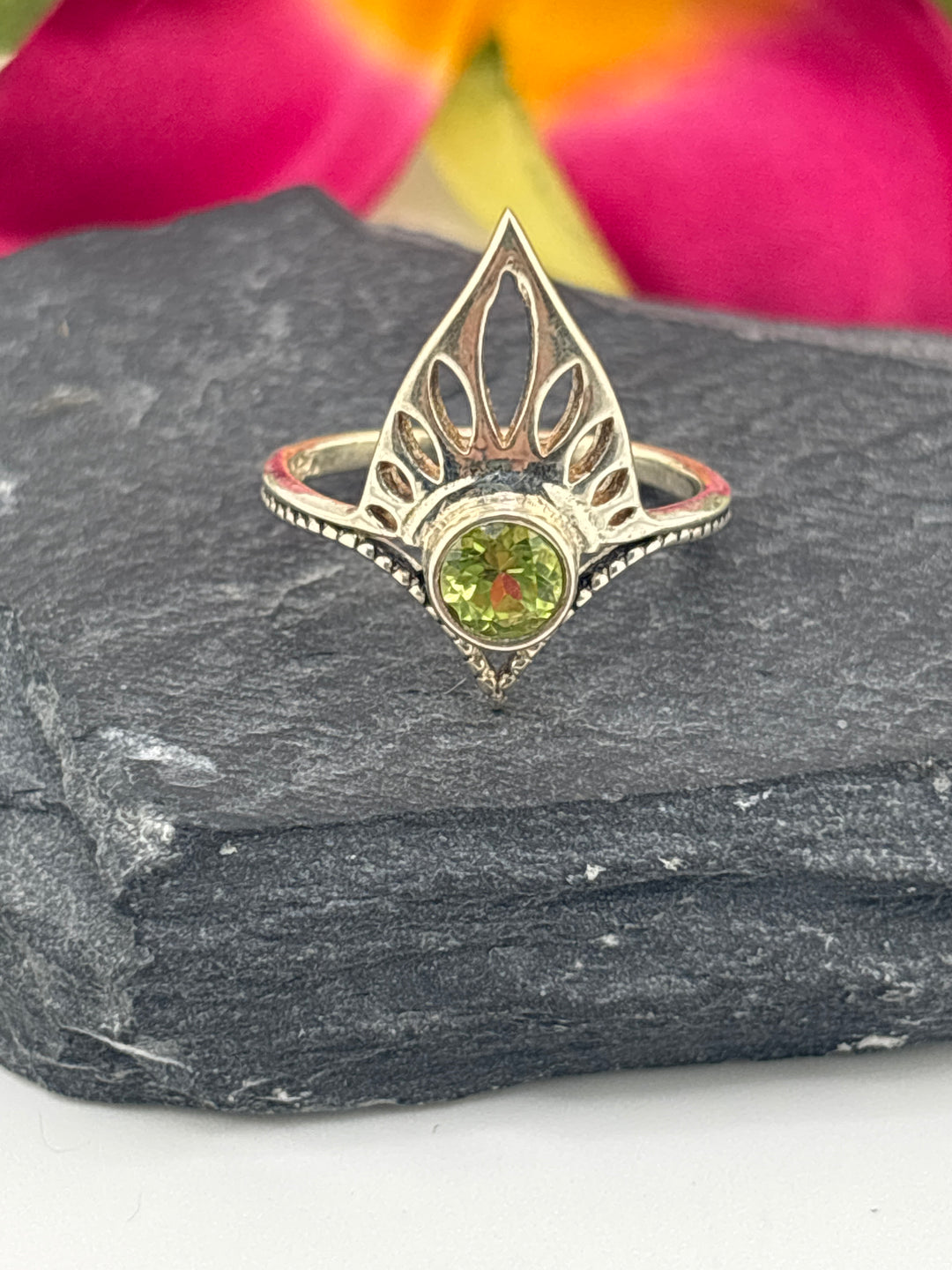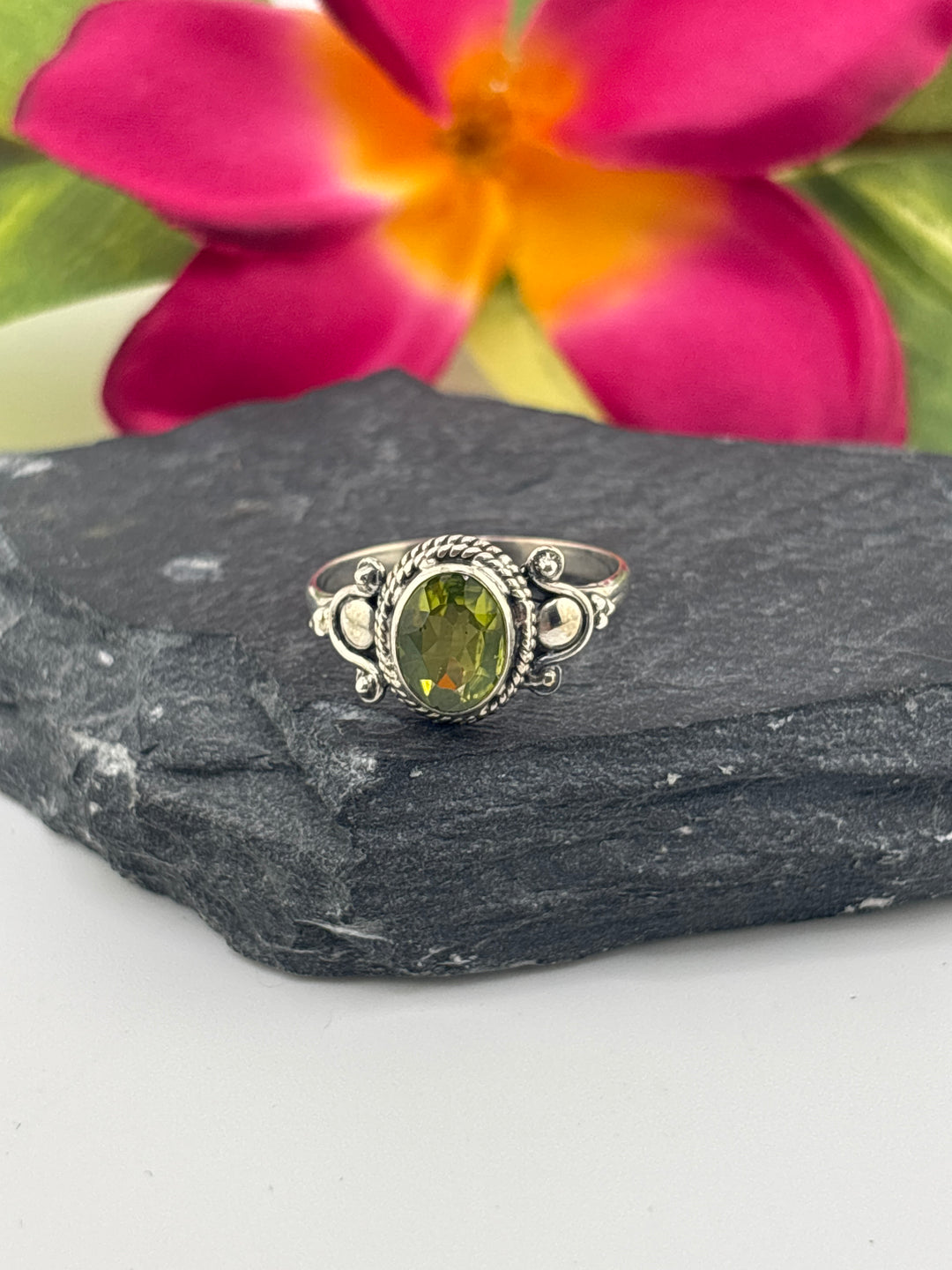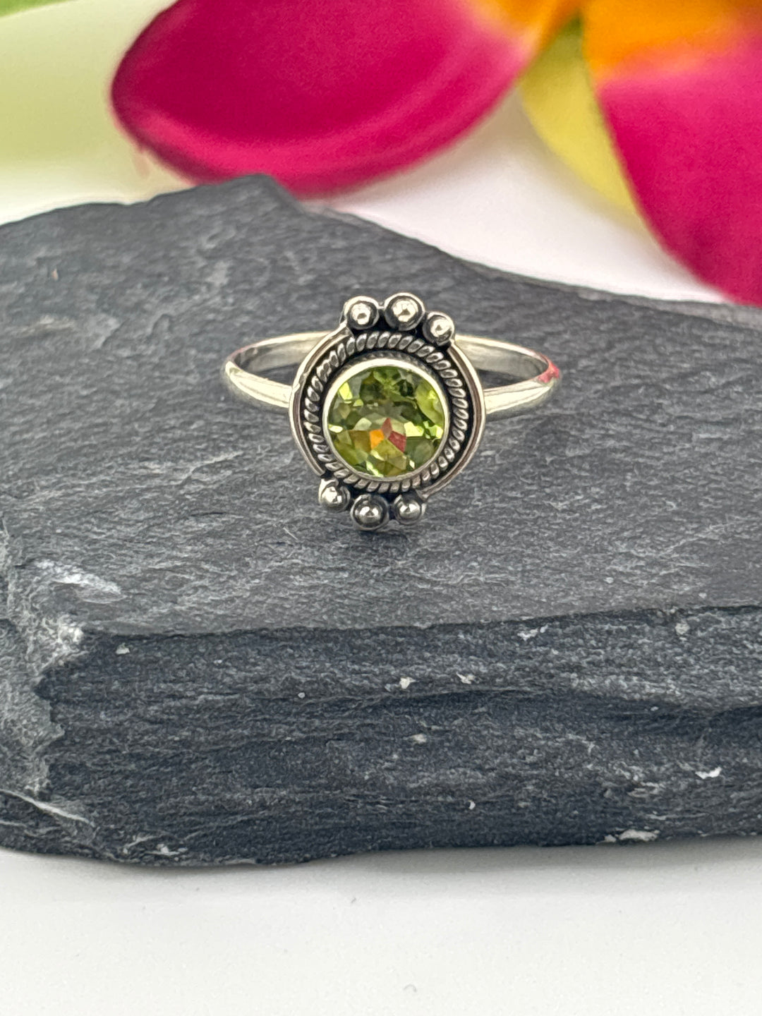 925 Sterling Silver, Peridot & CZ accented Ring Size 5