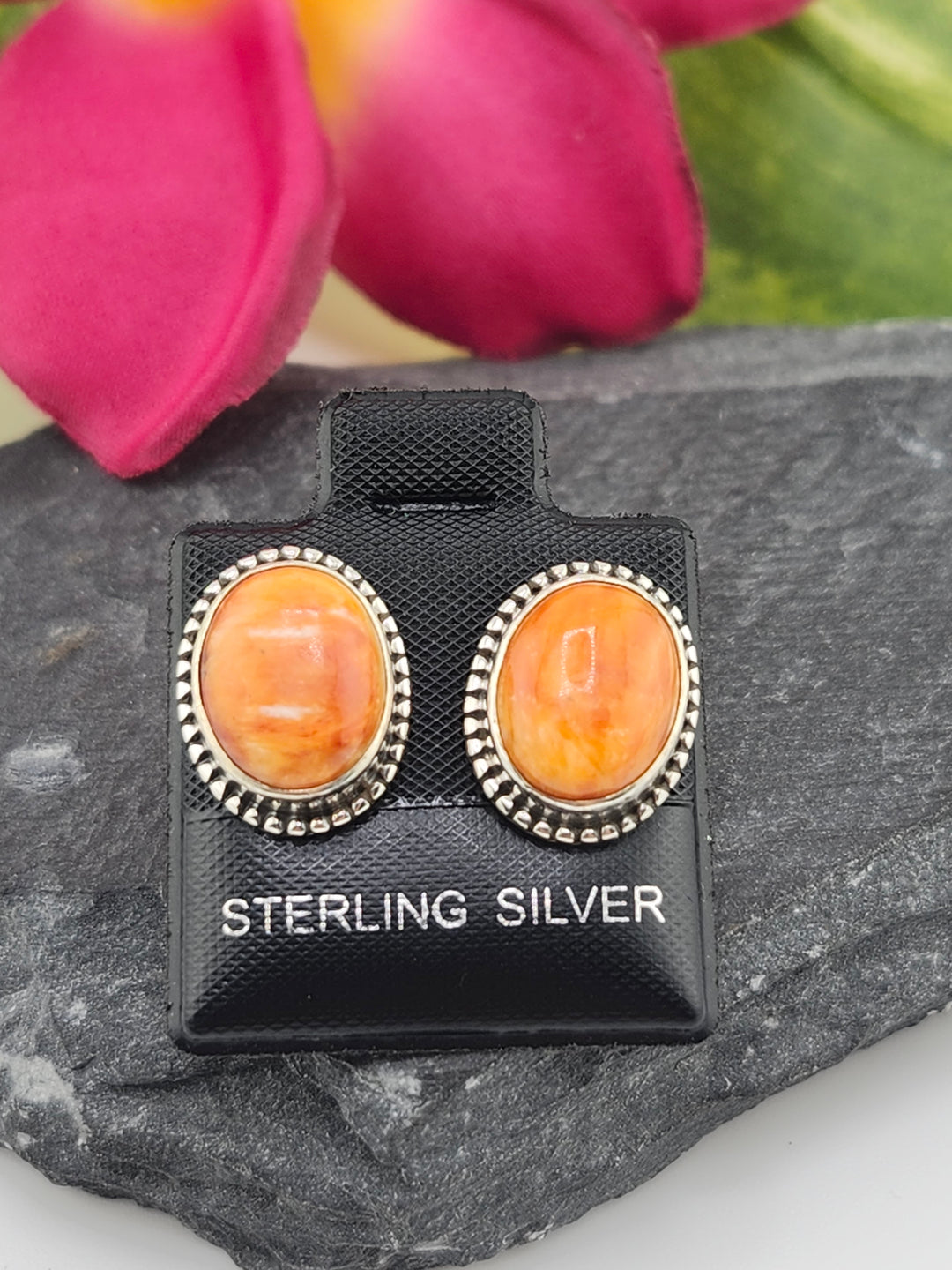 Orange Spiny Oyster Oval Stud Earrings