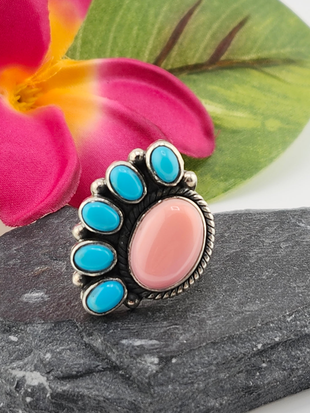 Queen Conch & Turquoise Ring Size 8