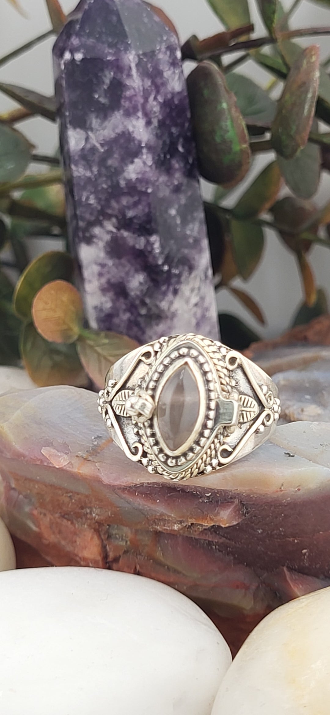 Rose Quartz and 925 Sterling Silver Locket Ring - Size 10
