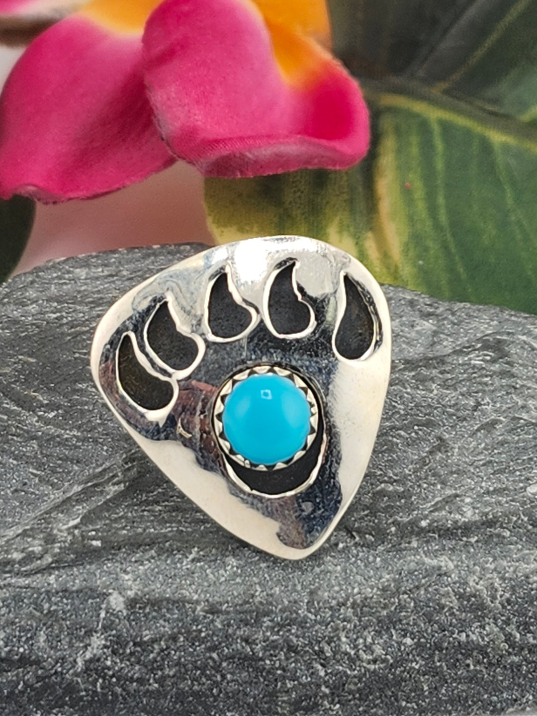 Turquoise Bear Paw Print & 925 Sterling Silver Ring Size 8