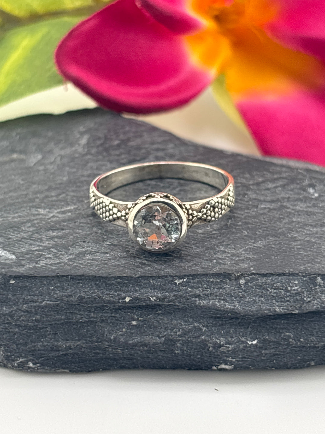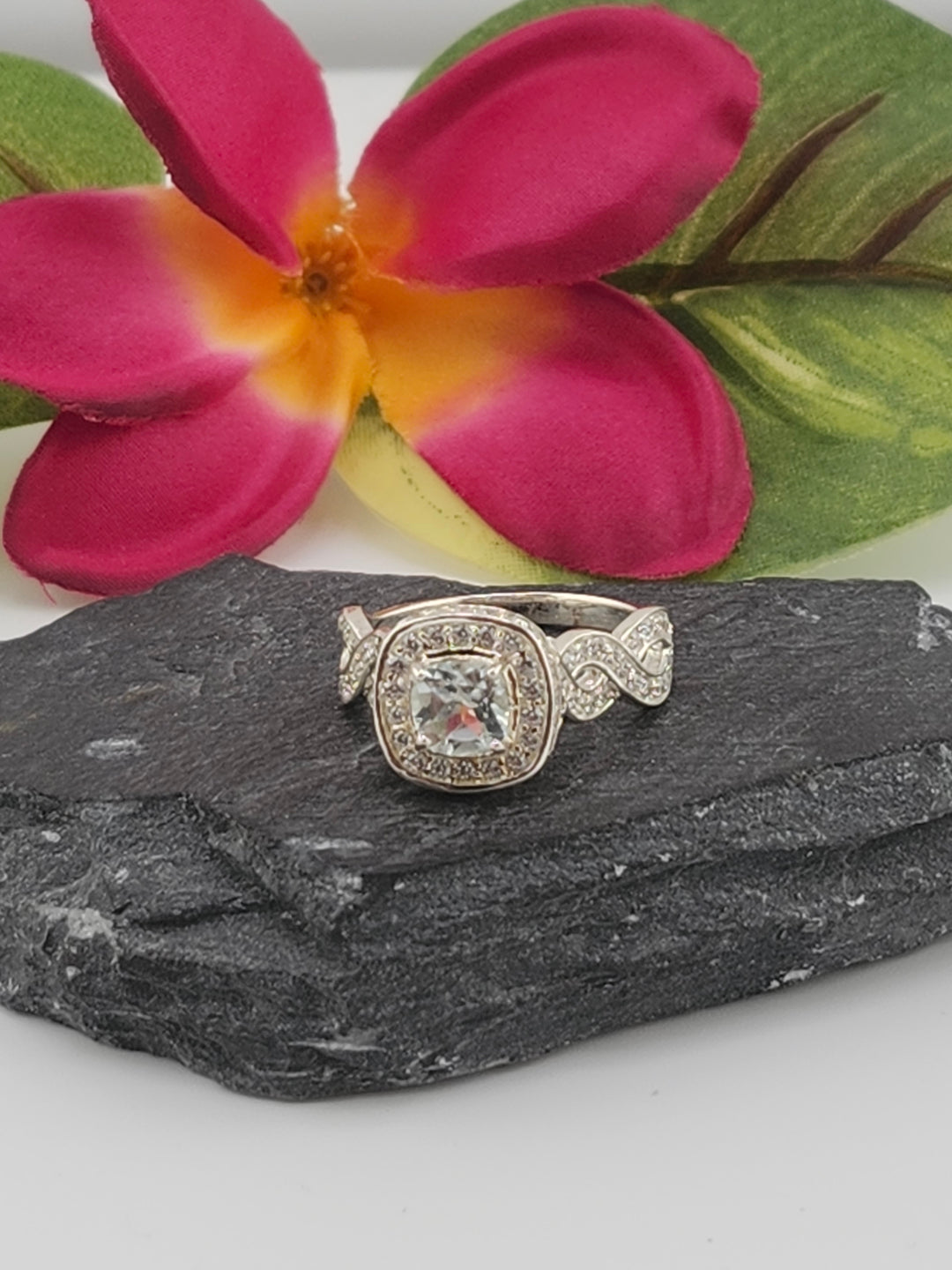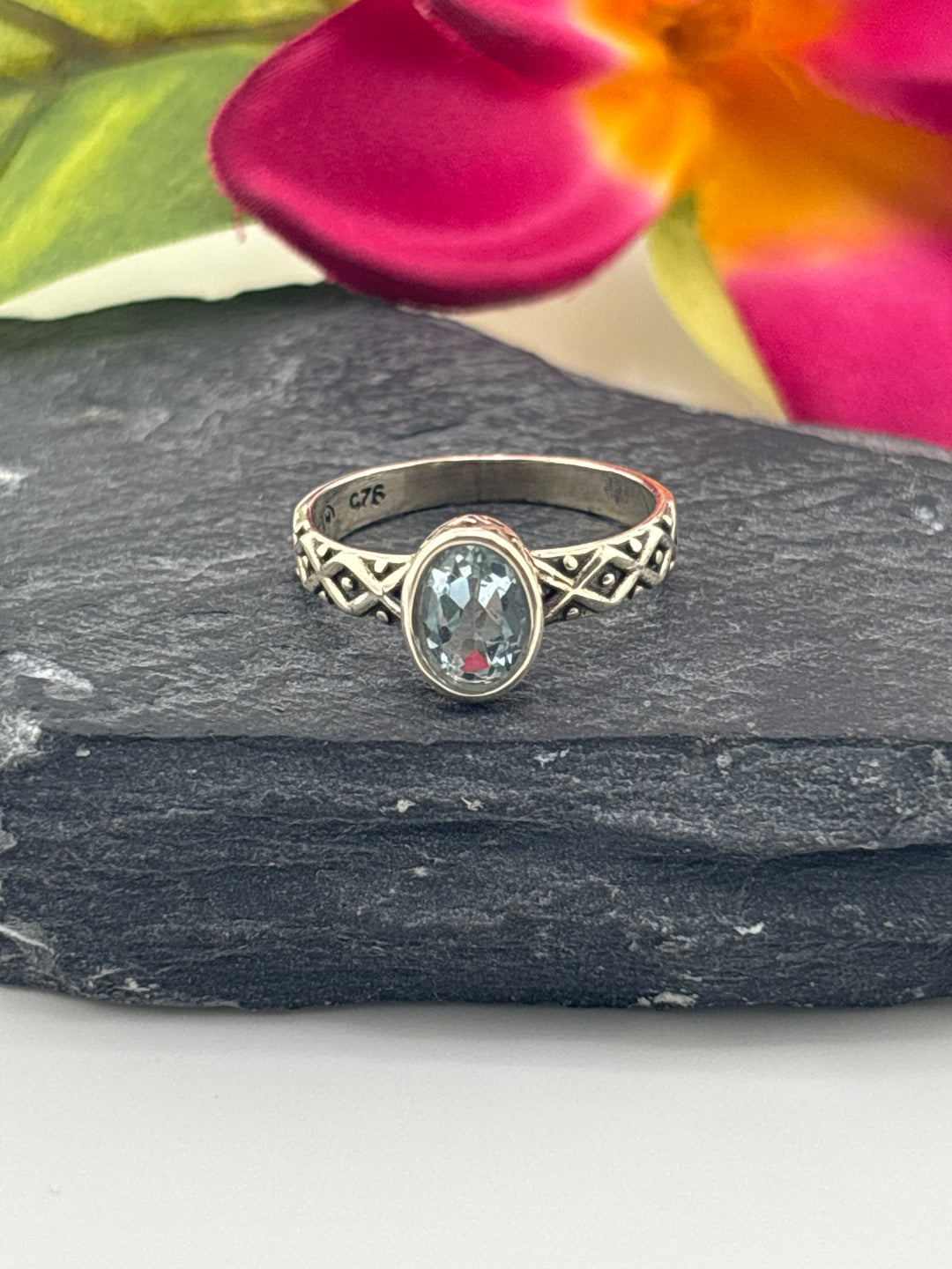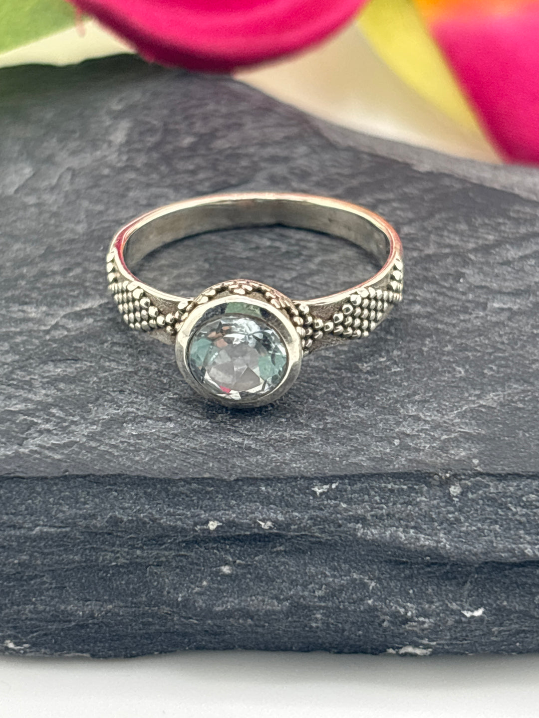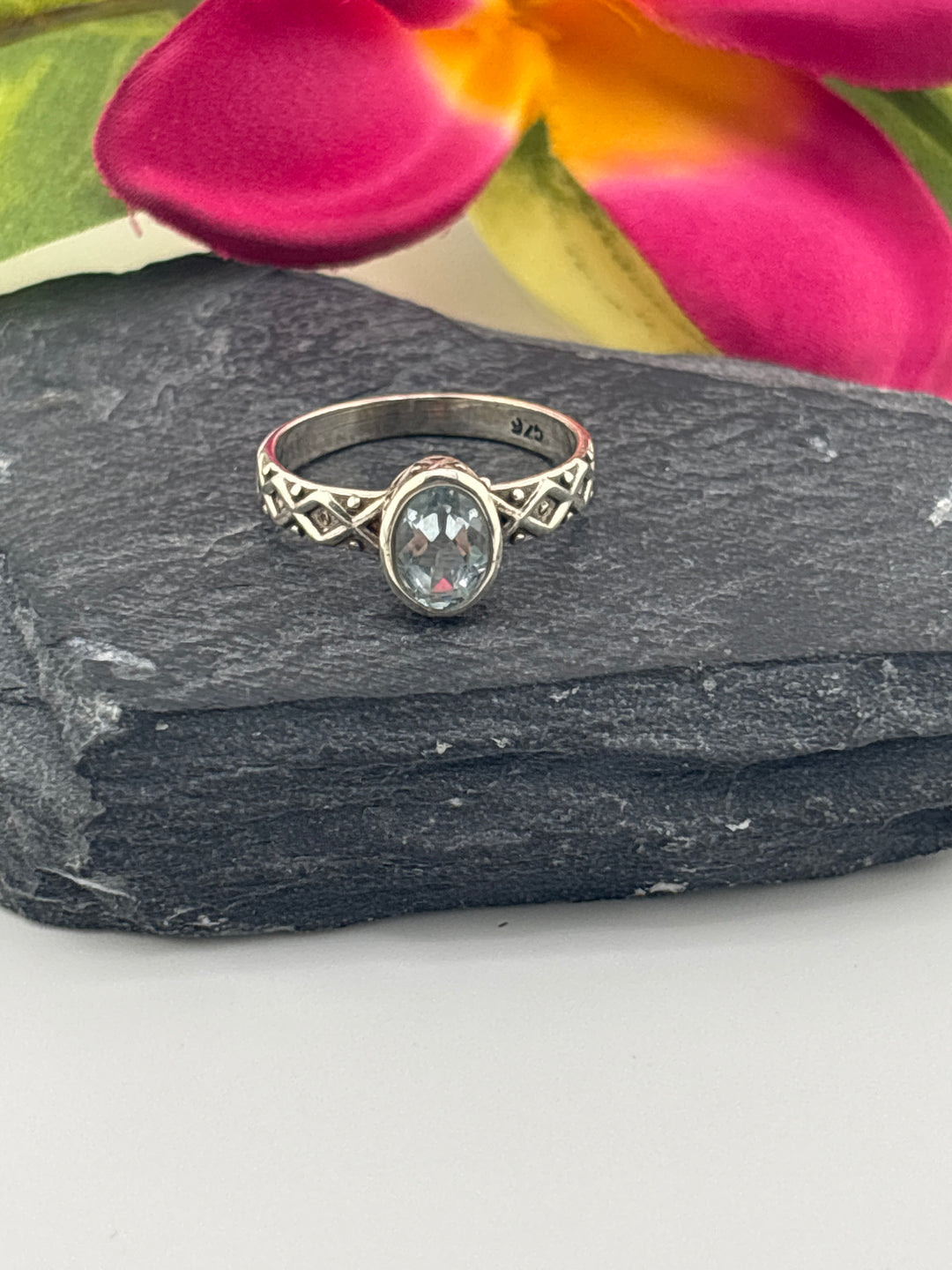 Aqua and 925 Sterling Silver Ring w/ cz