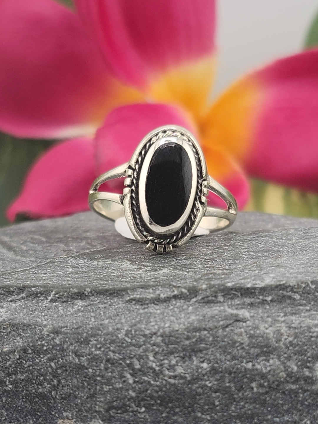 Black Onyx & 925 Sterling Silver Ring Size 7