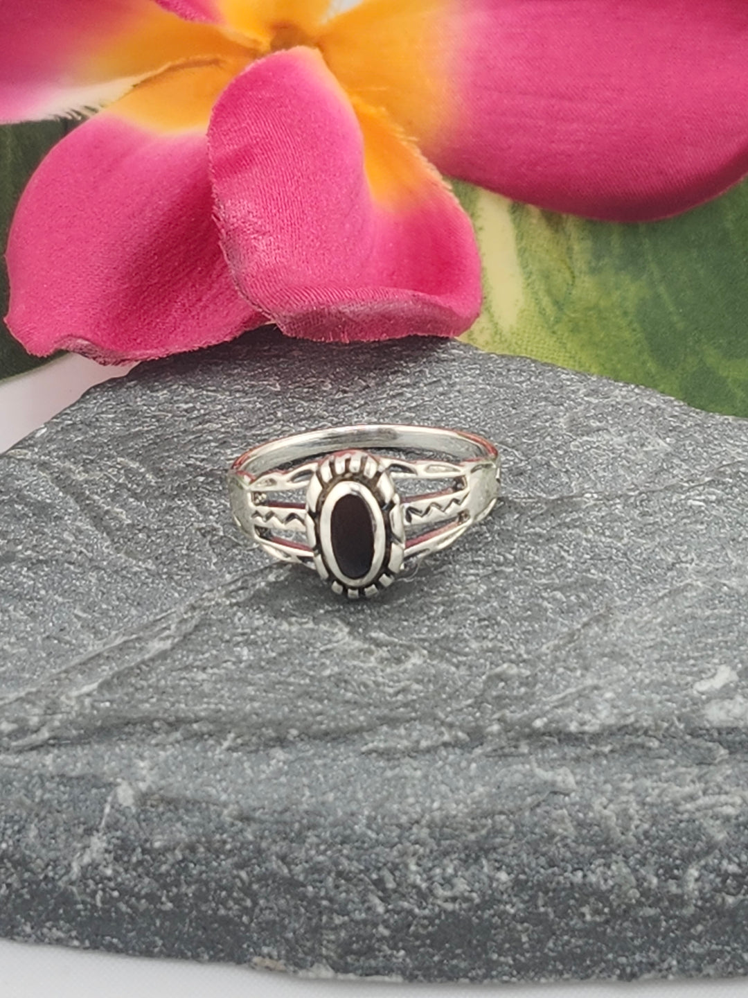 Black Onyx & 925 Sterling Silver Ring Size 5
