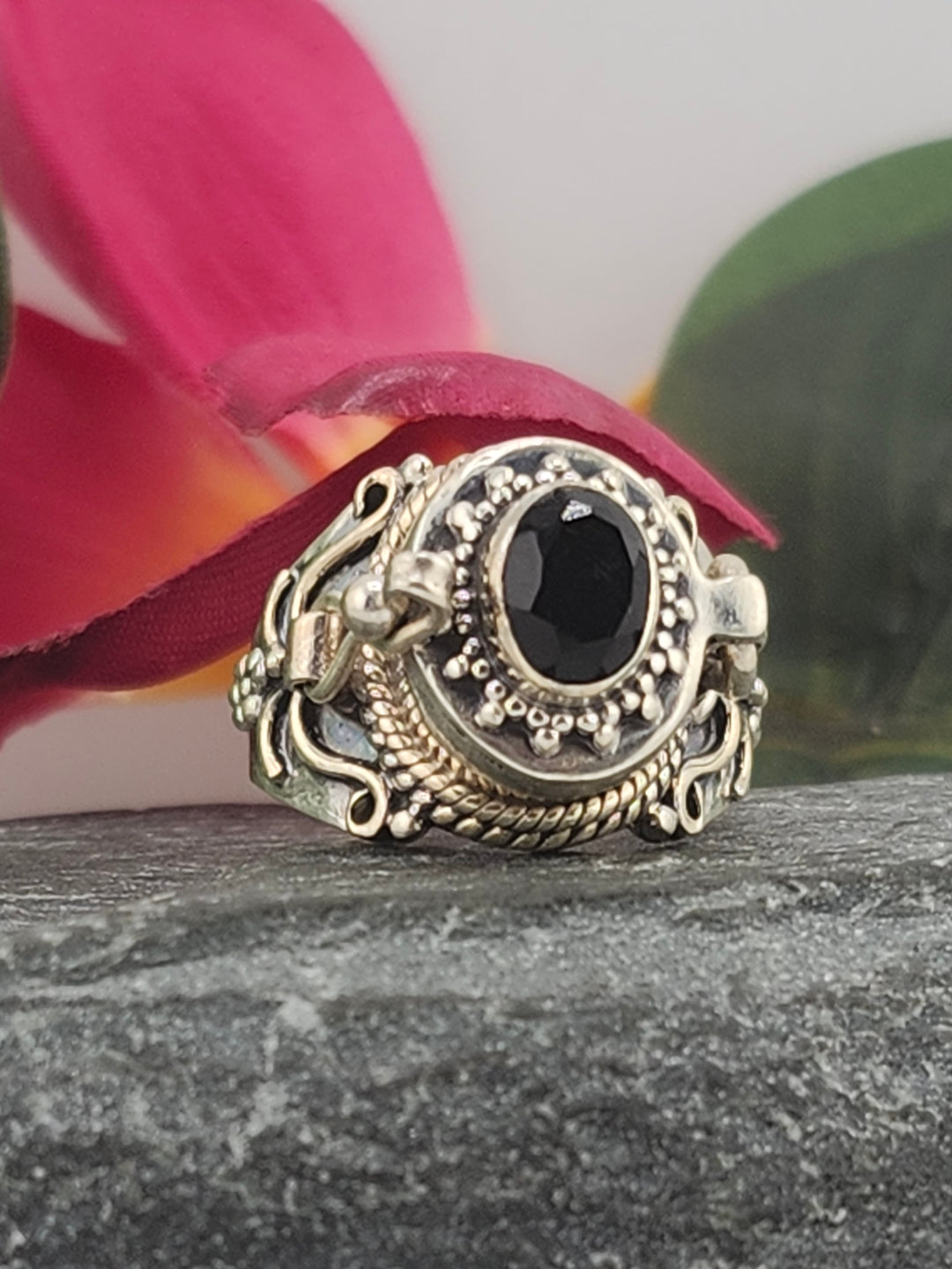 Black Onyx & 925 Sterling Silver Locket Ring Size 6