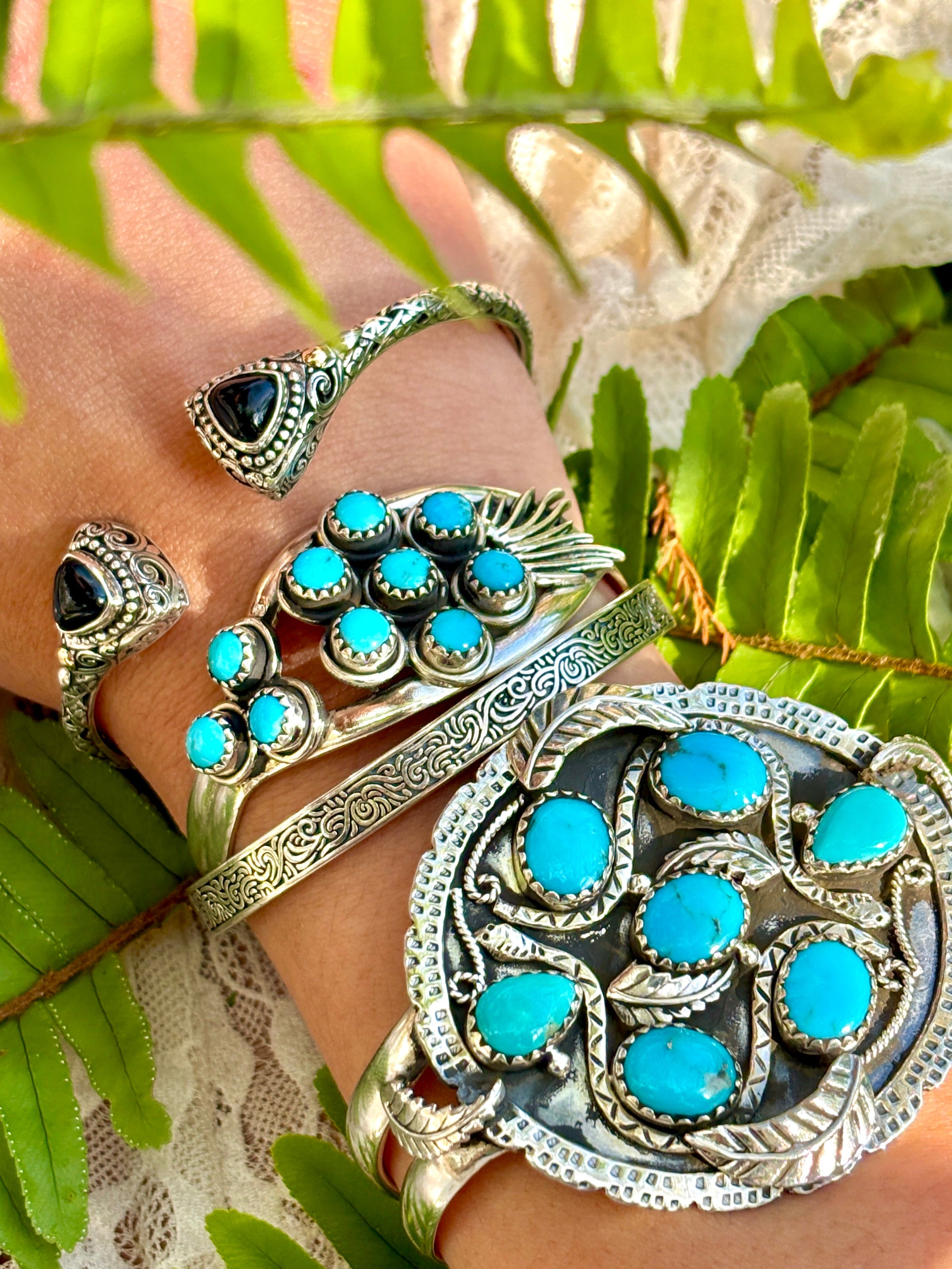 925 Sterling Silver 7 inch + 1 inch Extension Turquoise & Queen Bracelet