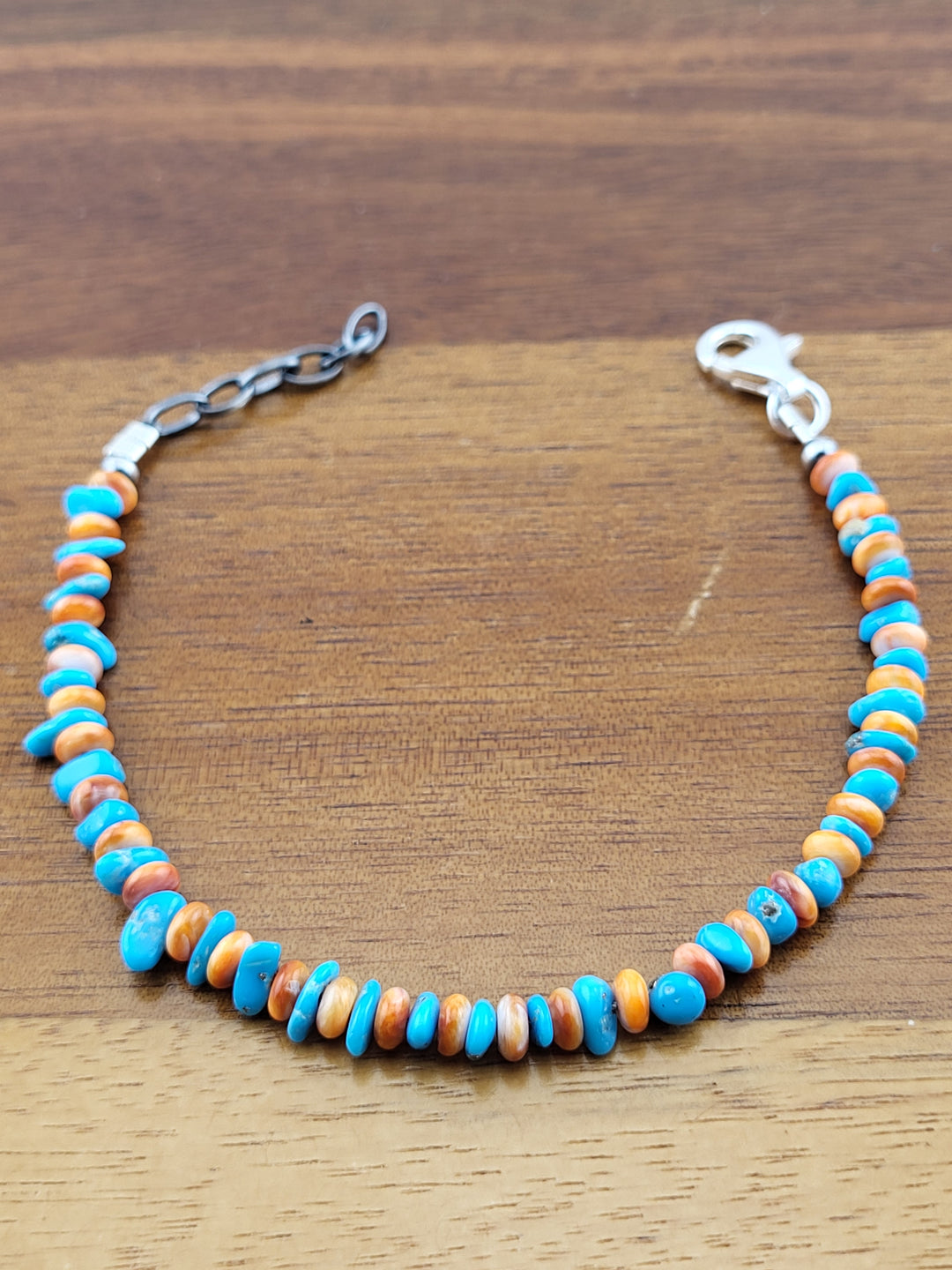 925 Sterling Silver 6 inch + 1 inch Extension Turquoise & Spiny Oyster Bracelet
