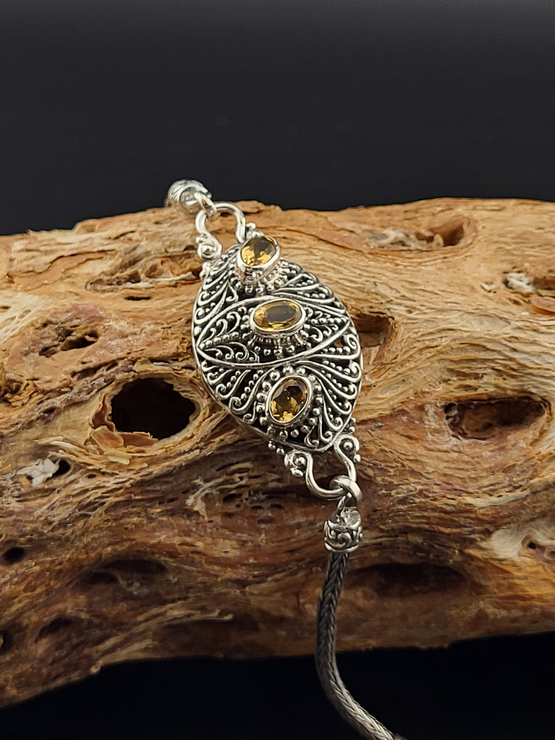 Bali 925 Sterling Silver Citrine Adjustable Bracelet