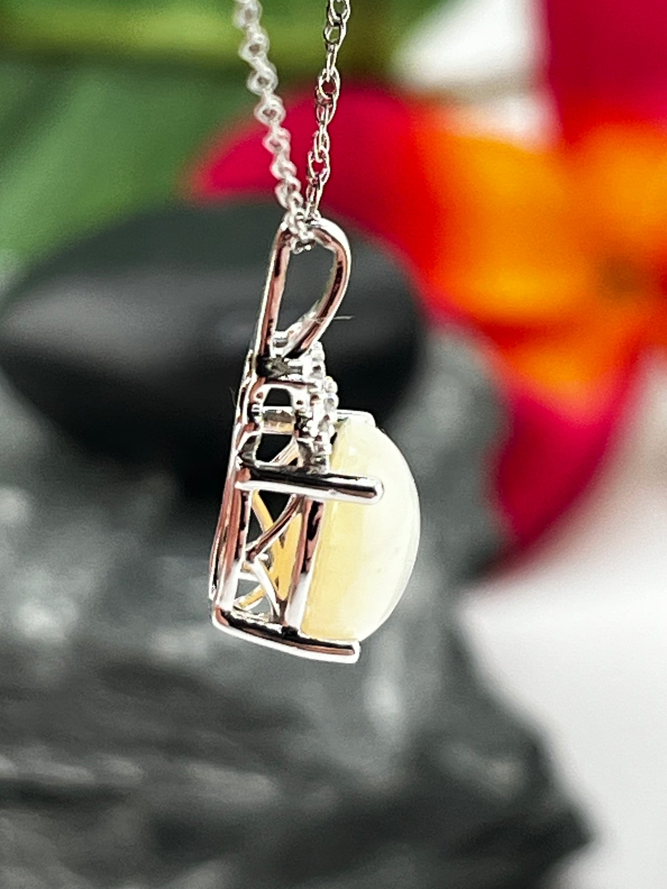 10K White Gold Ethiopian Opal and Diamond Necklace