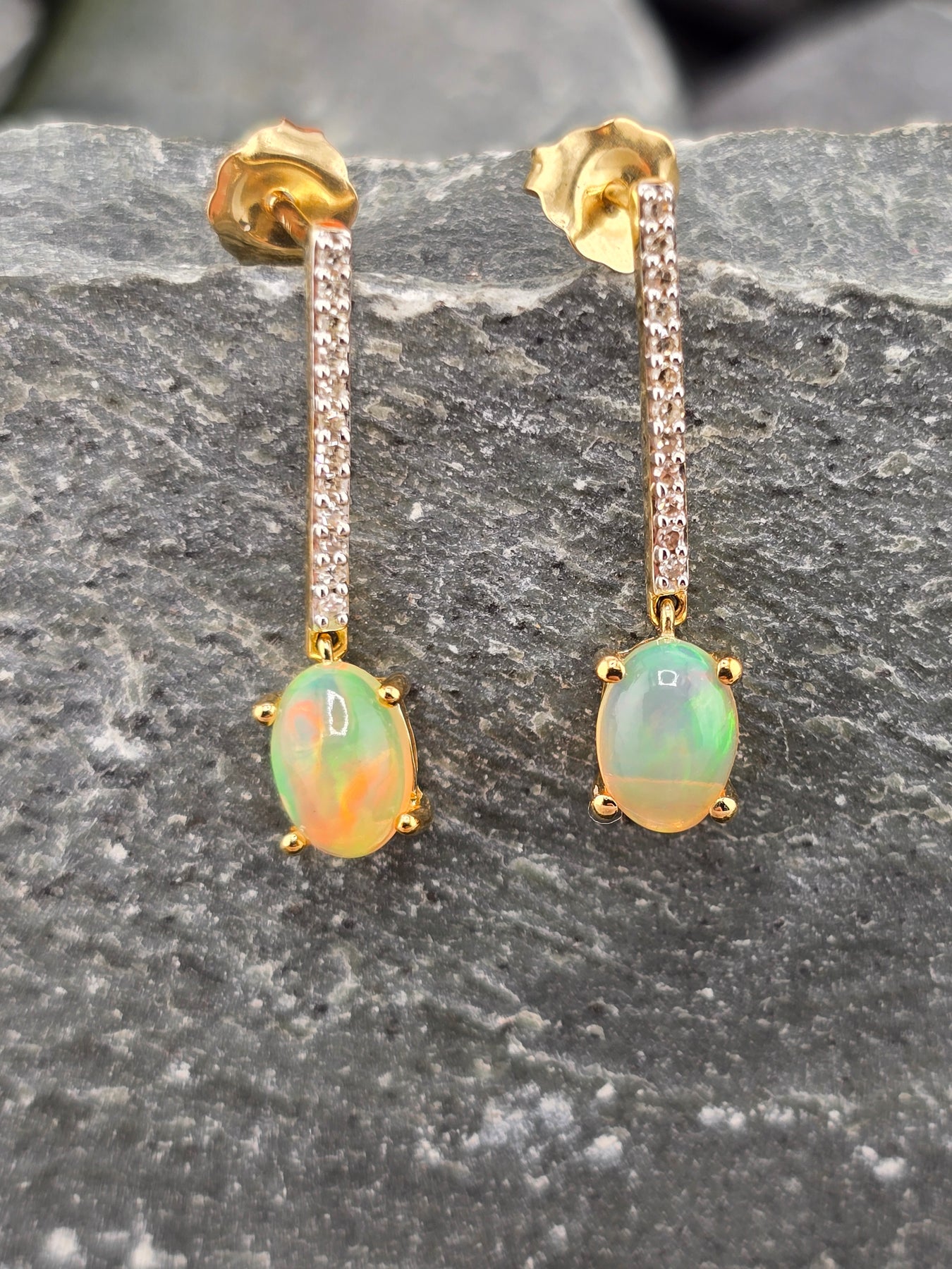 10K Gold Natural Ethiopian Opal & Natural Diamonds