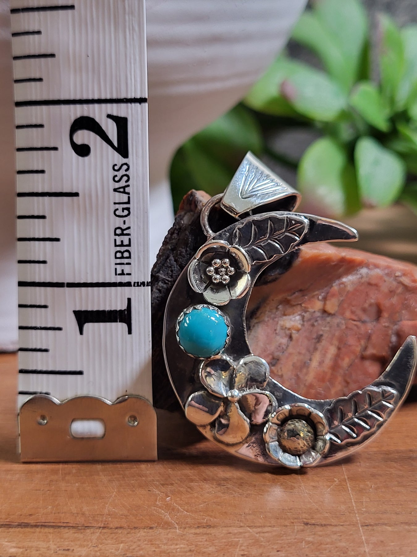 Natural Turquoise Moon Pendant 925 Sterling Silver