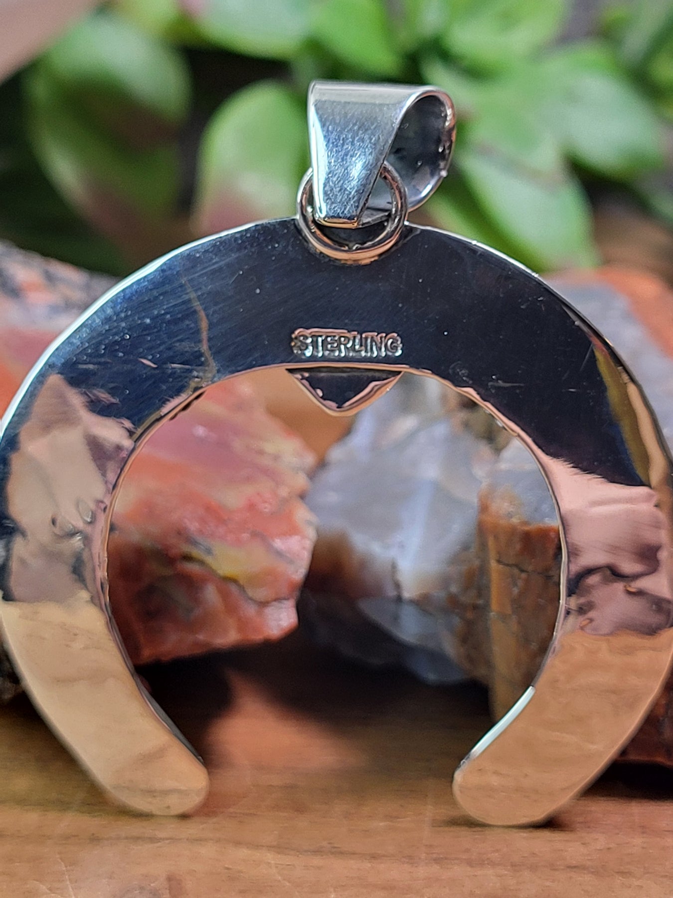 Natural Turquoise Horseshoe Pendant 925 Sterling Silver