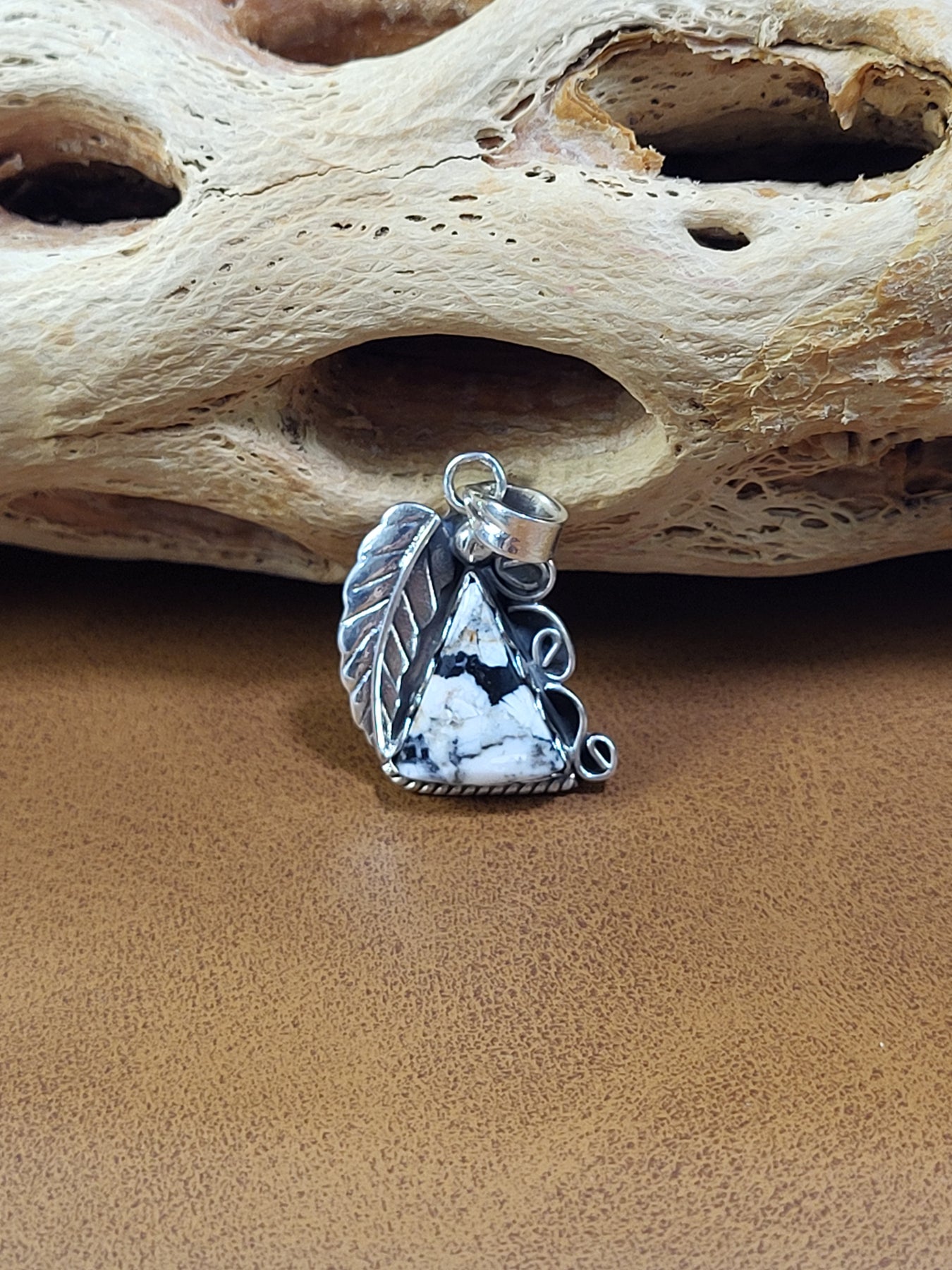 Natural White Buffalo 925 Sterling Silver Pendant