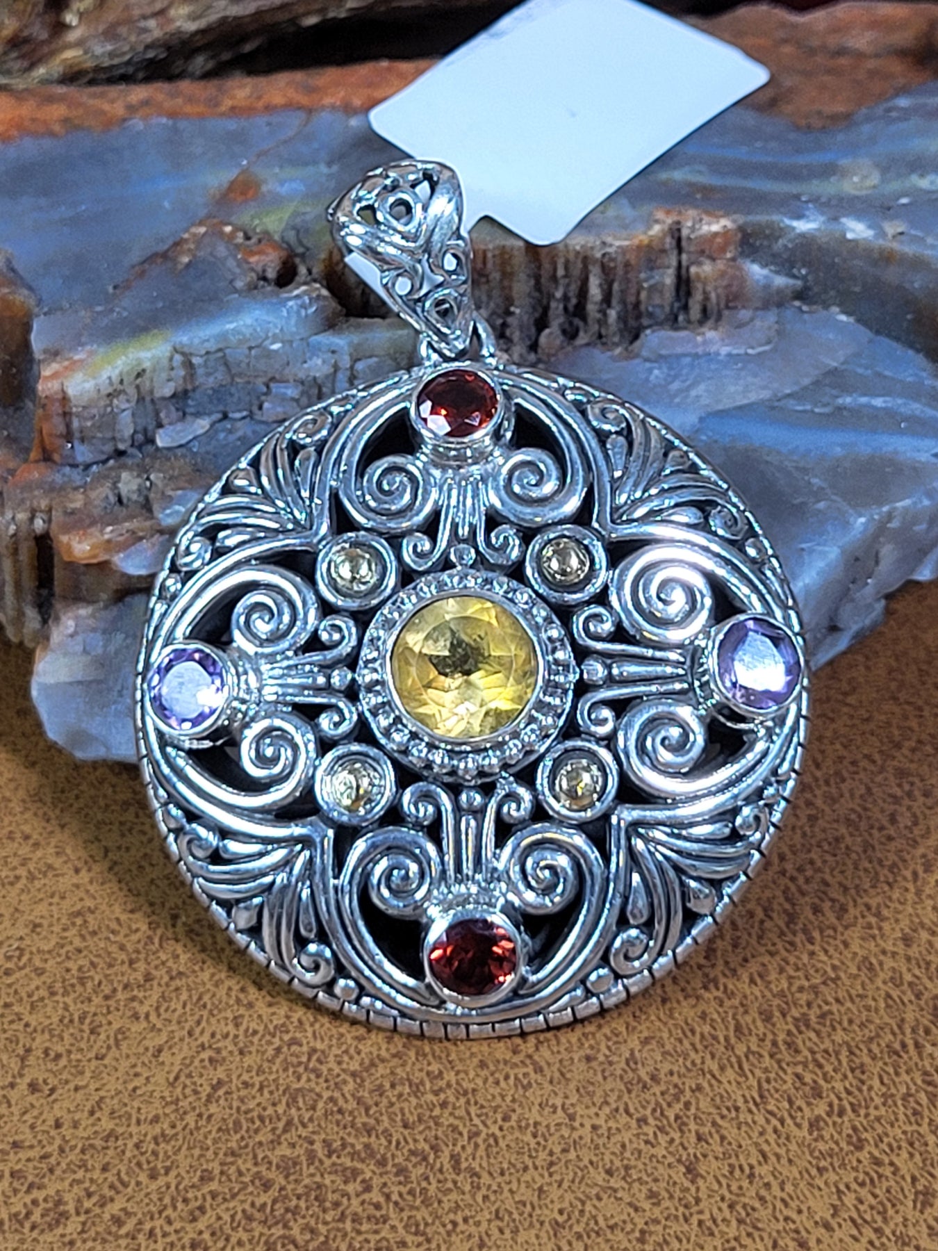 Natural Citrine/Garnet/Amethyst Pendant with 18K Accents