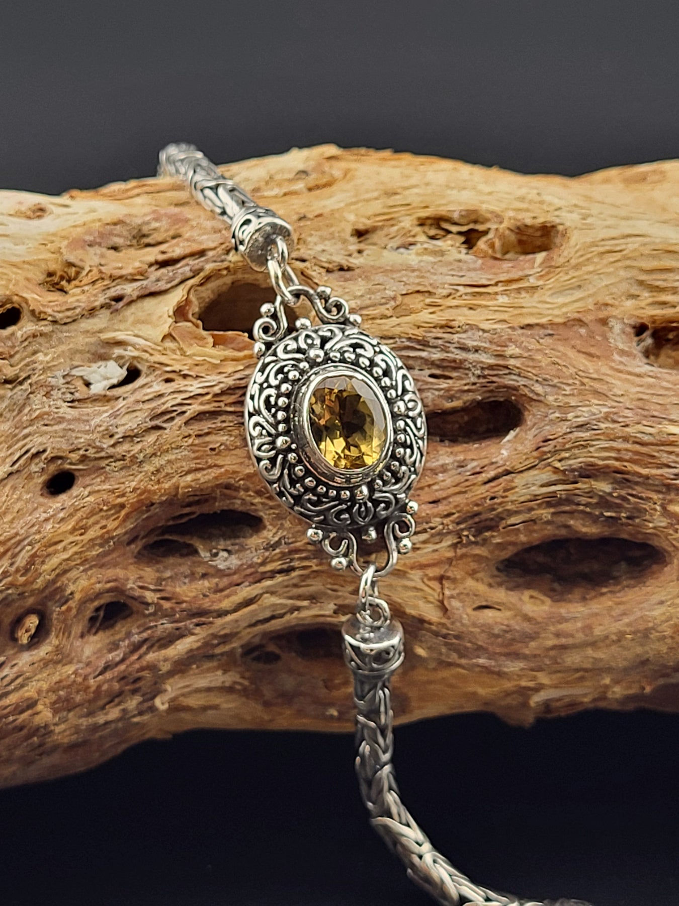 Bali 925 Sterling Silver Citrine Adjustable Bracelet