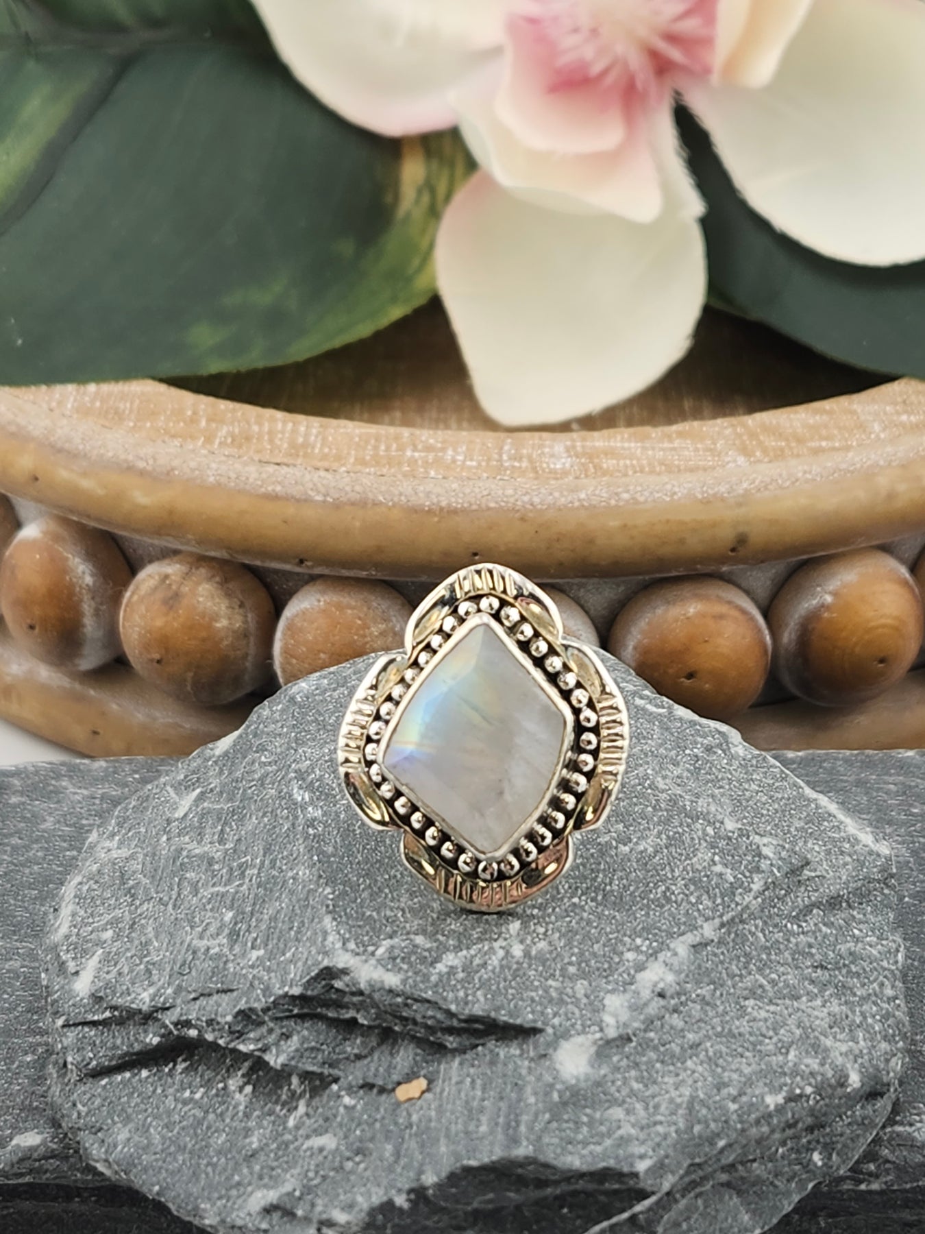 Faceted Moonstone Ring Size 7