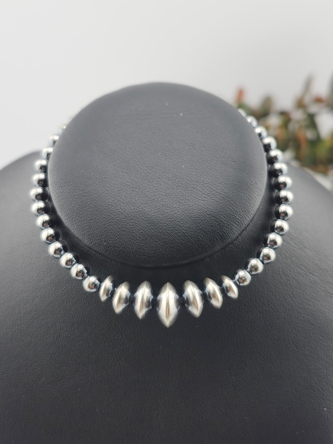 Graduated Bead 3/4/5/6 mm 24"+2" Oxidized 925 Sterling Silver Neckace