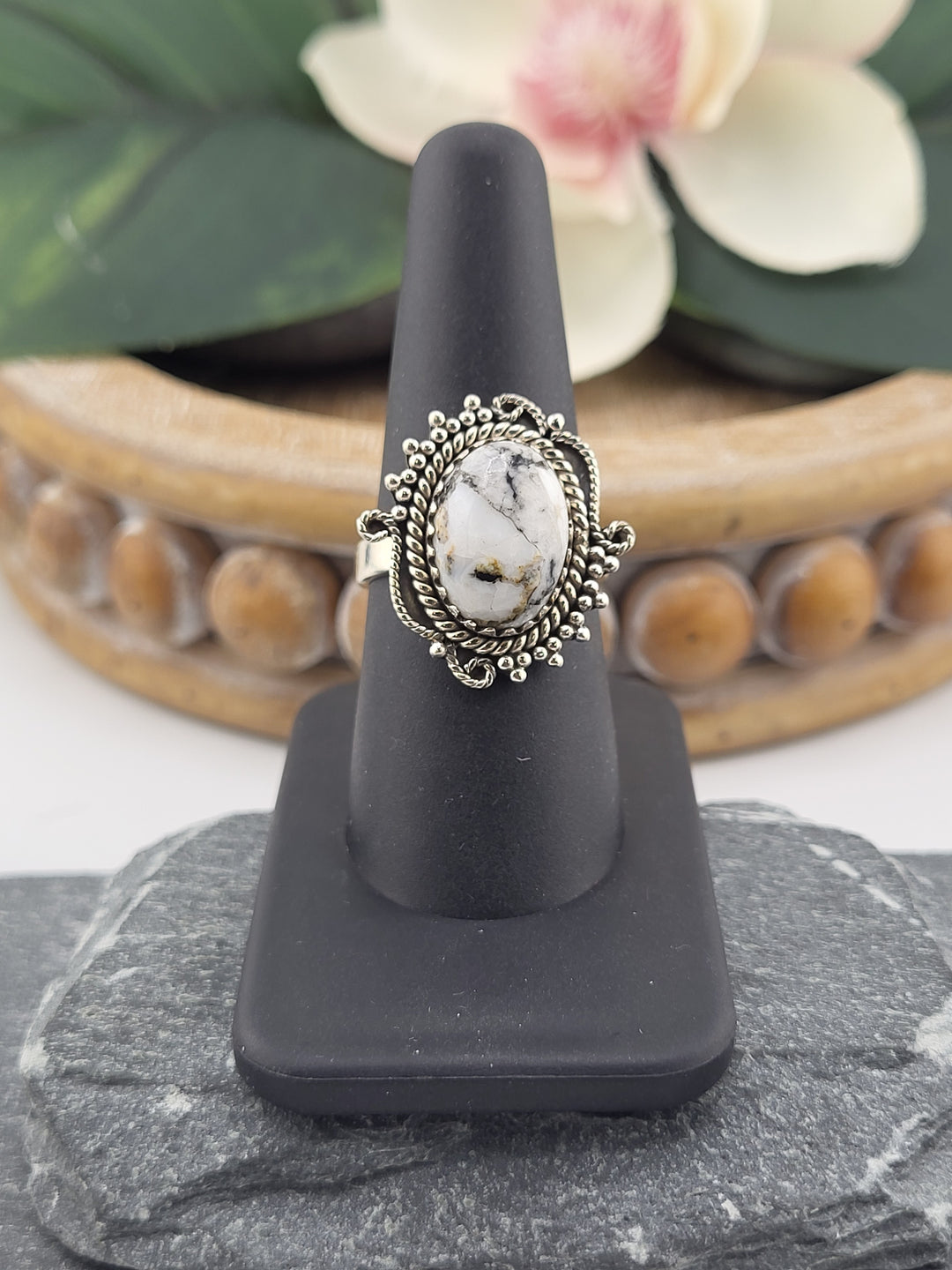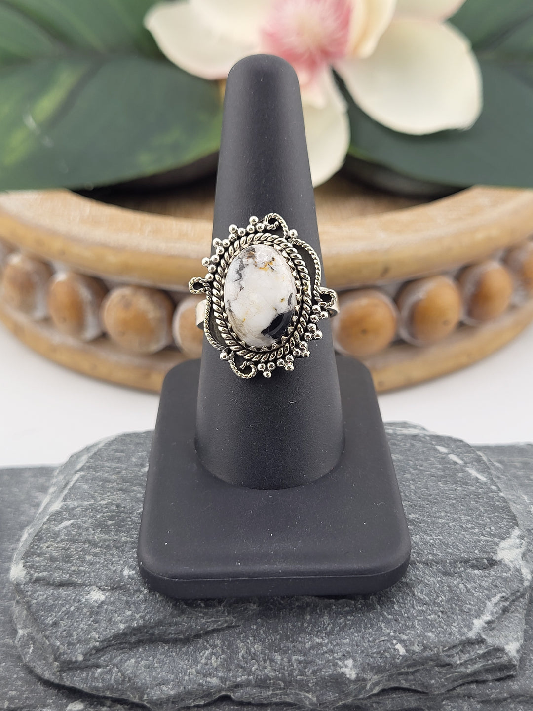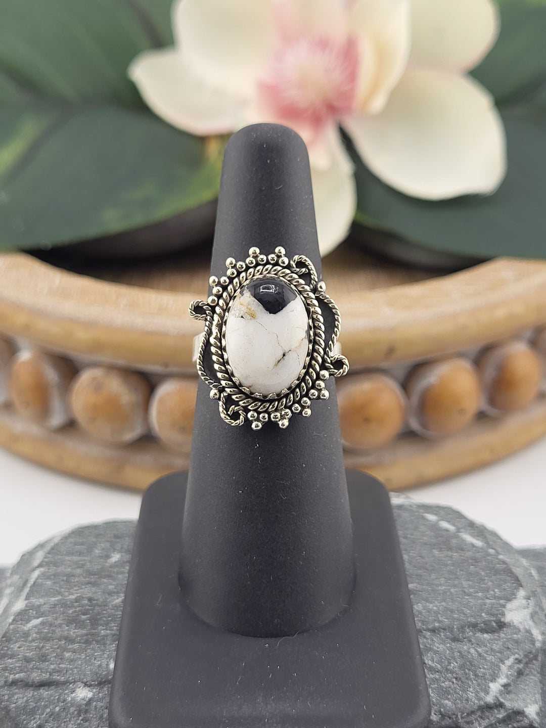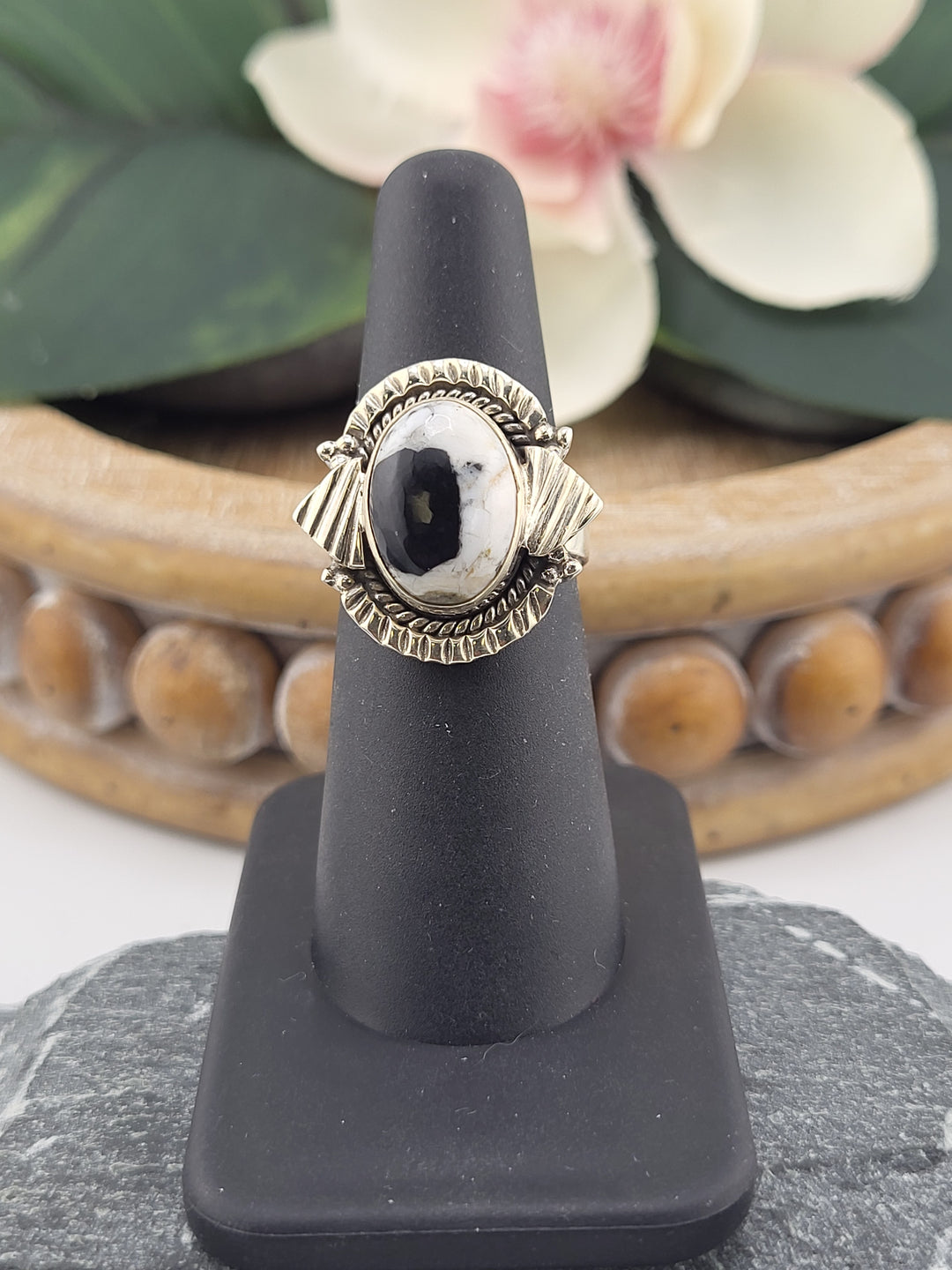 White Buffalo Oval Ring