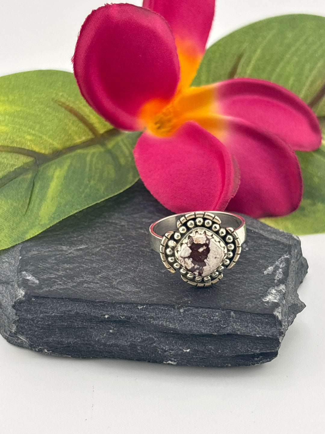 Round Wild Horse Jasper and 925 Sterling Silver Ring Size 7
