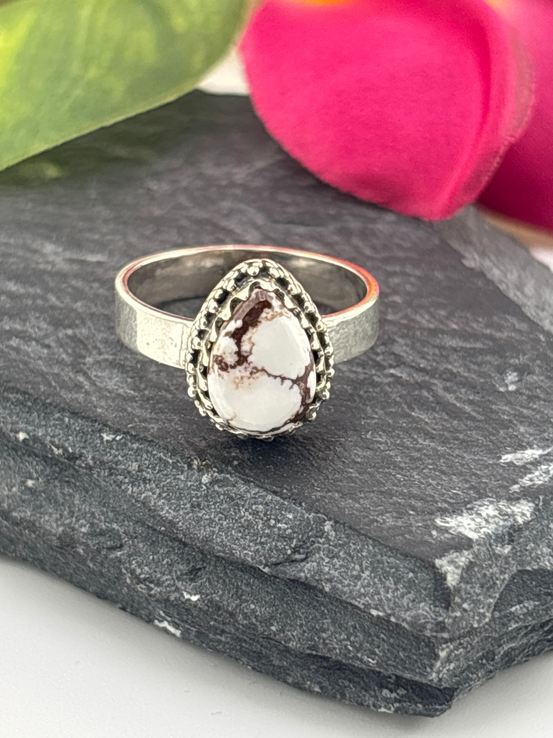 Teardrop Wild Horse Jasper and 925 Sterling Silver Ring Size 6.5