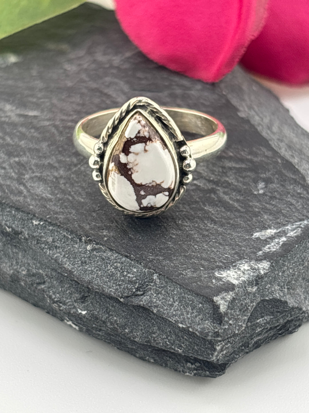 Teardrop Wild Horse Jasper and 925 Sterling Silver Ring Size 7