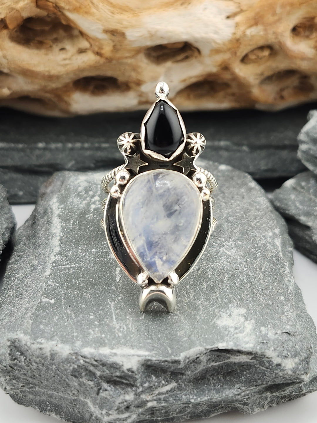 Moonstone and Black Onyx Ring