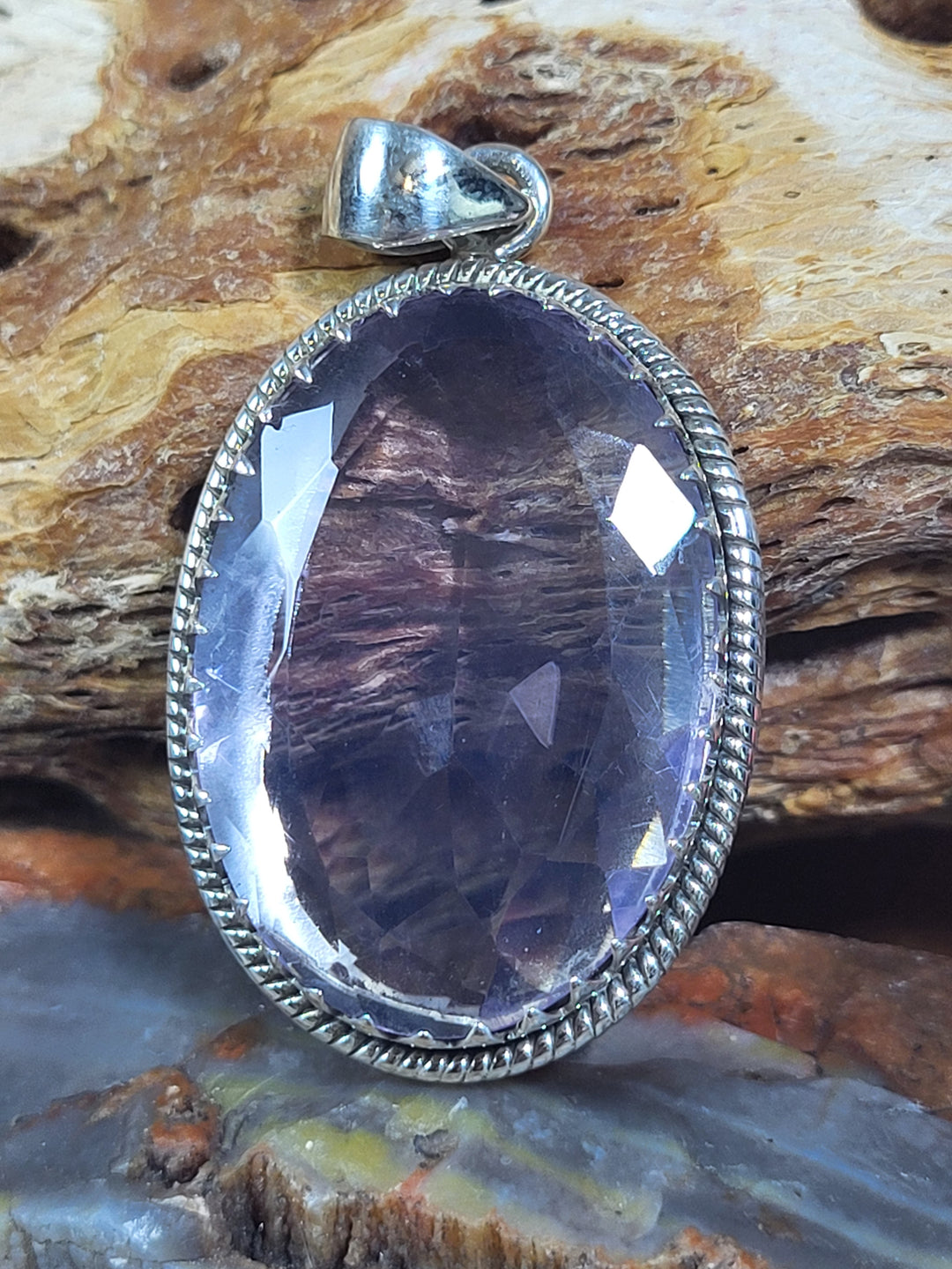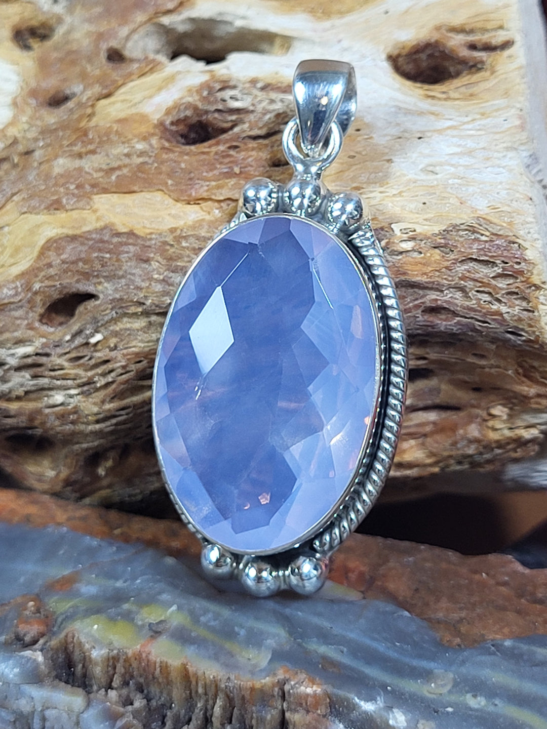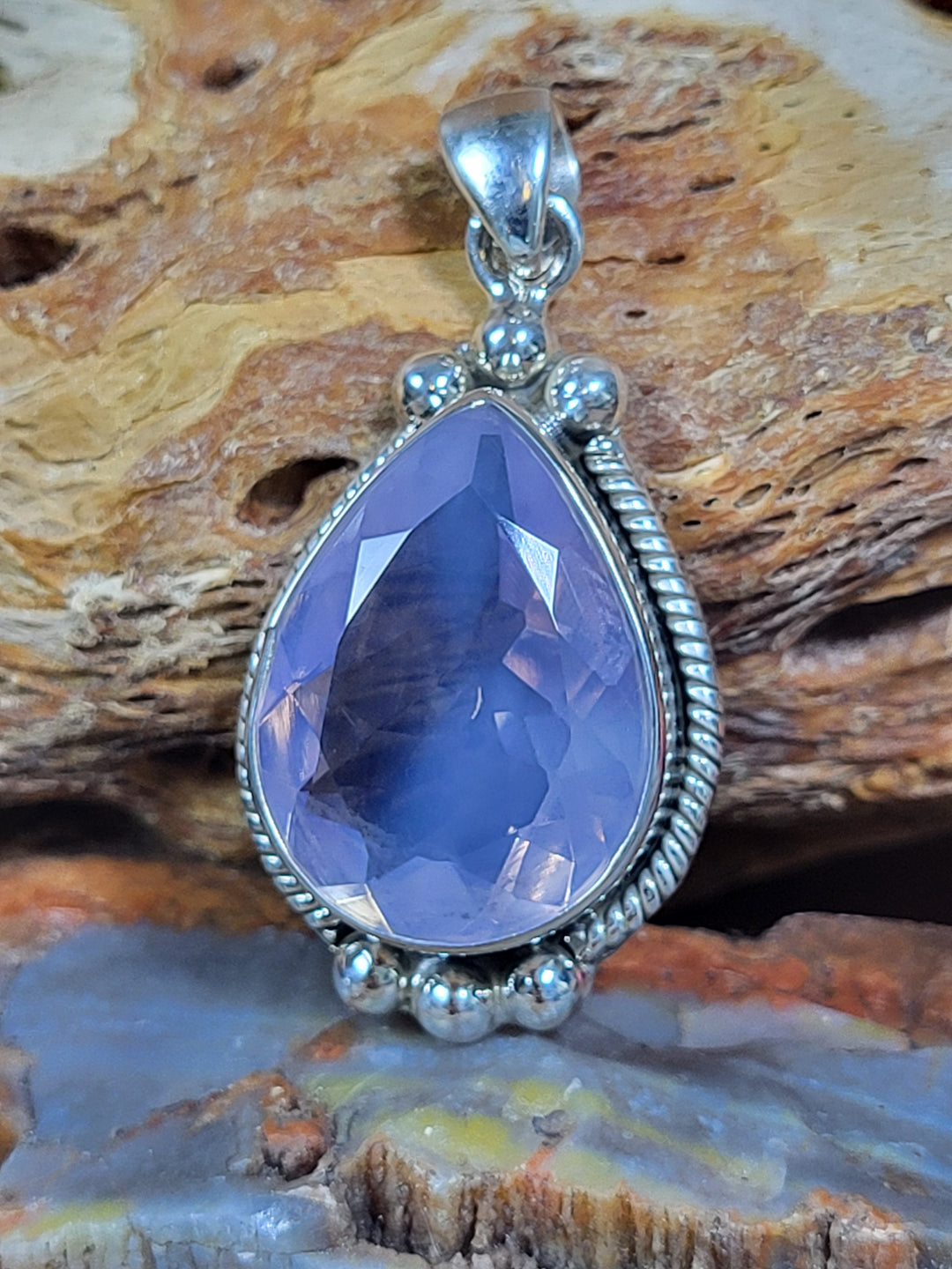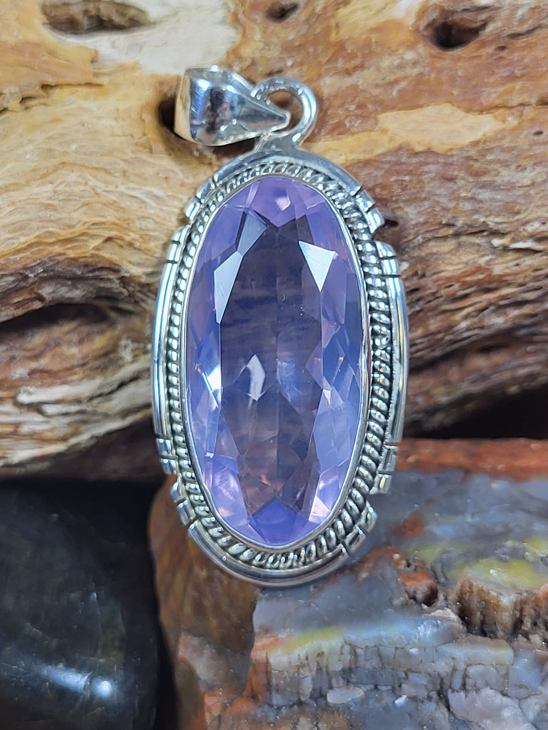 Natural Lavender Quartz 925 Sterling Silver Pendant - 1 3/4"