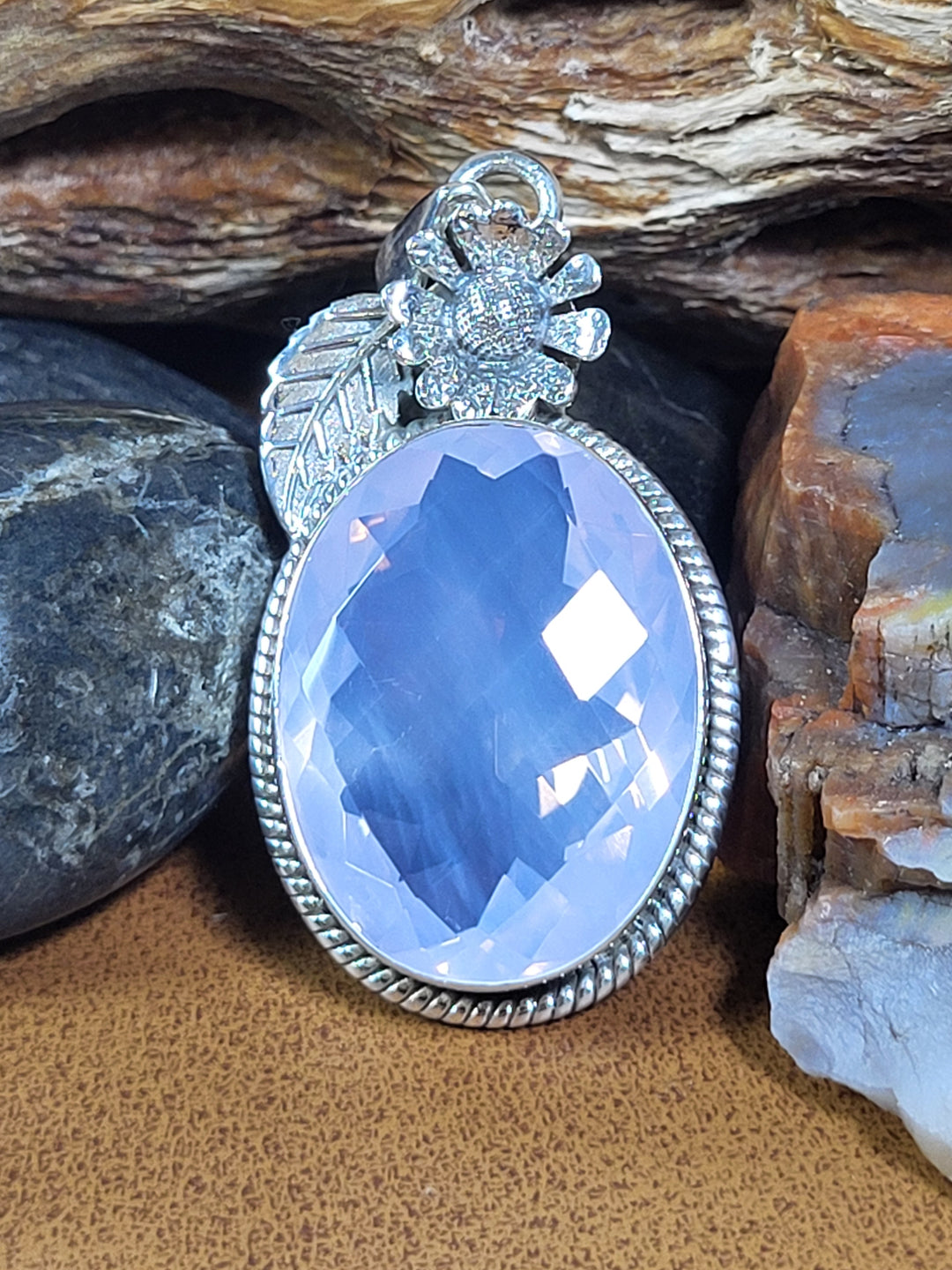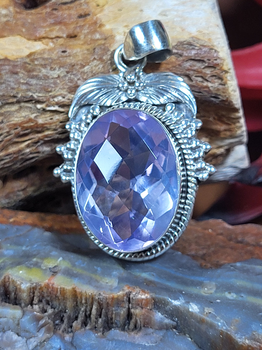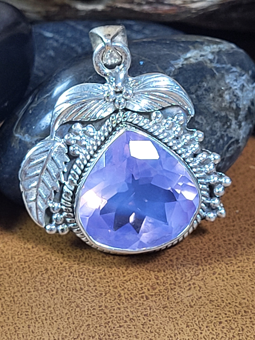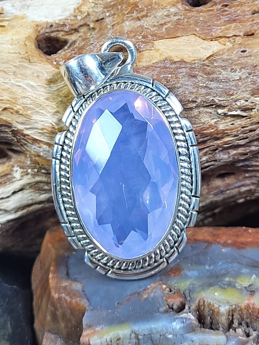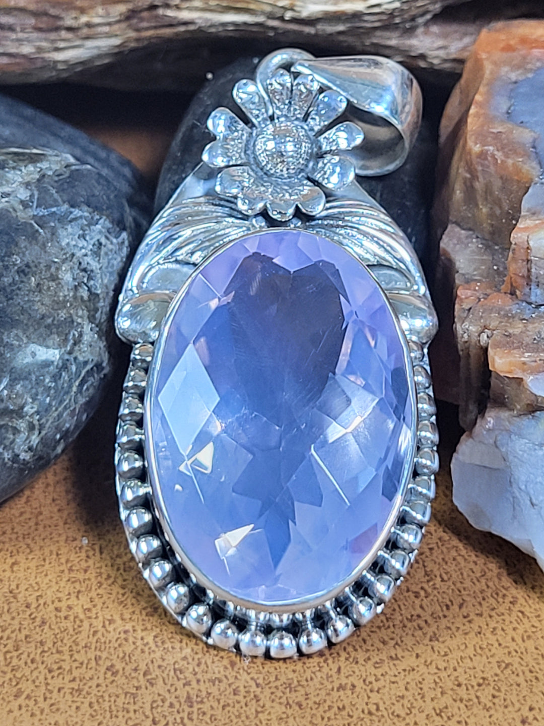 Natural Lavender Quartz 925 Sterling Silver Rose Cut Pendant - 1 3/4"