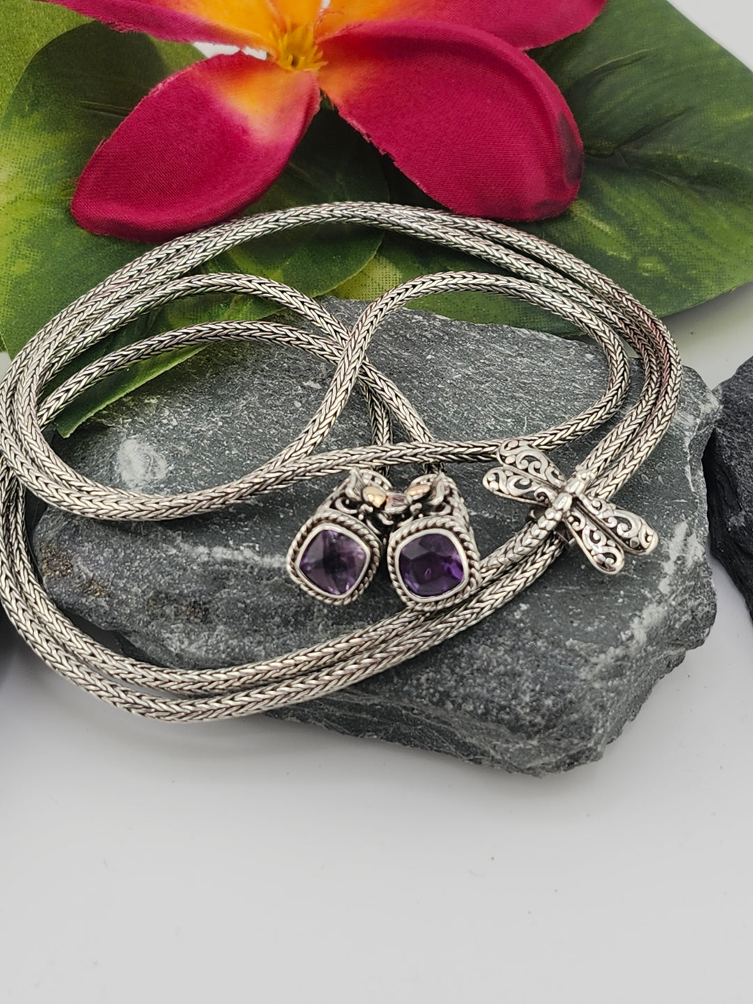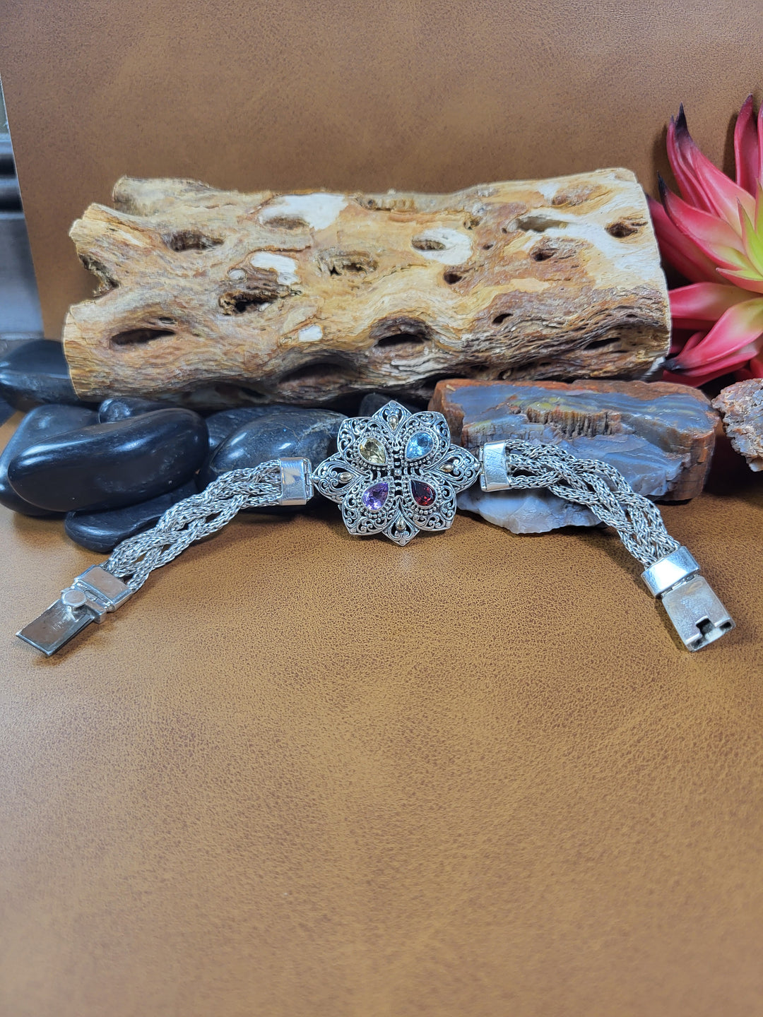 Natural Garnet/Citrine/Amethyst/Blue Topaz with 18k Accents 925 Sterling Silver Bali Bracelet - Size 7