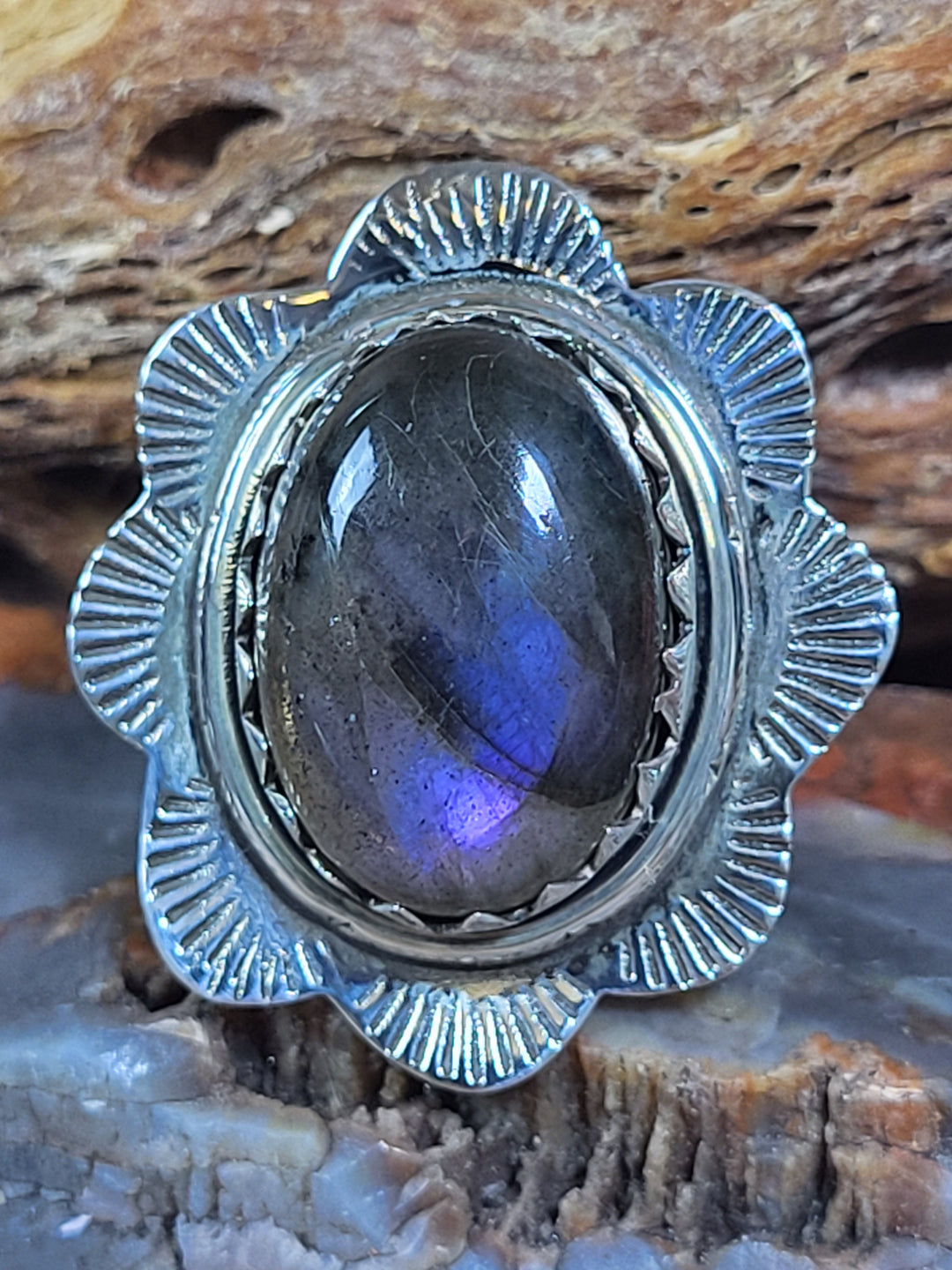 Natural Purple Labradorite 925 Sterling Silver Ring - Size 9
