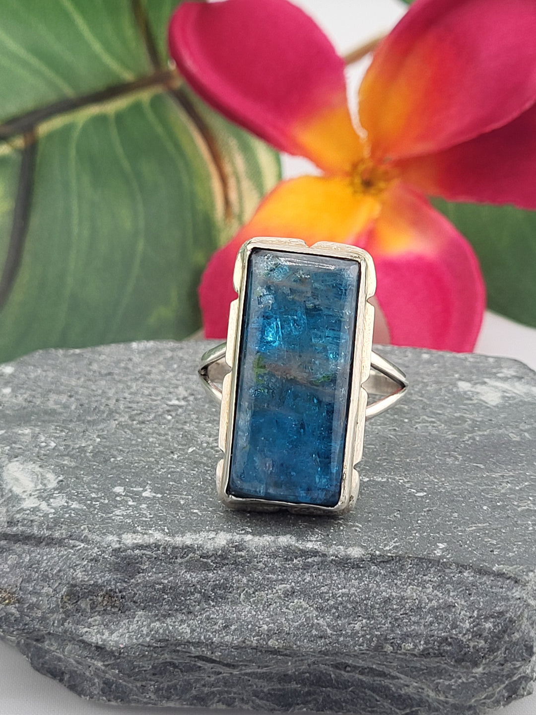 Raw Blue Tourmaline and 925 Sterling Silver Ring Size 8