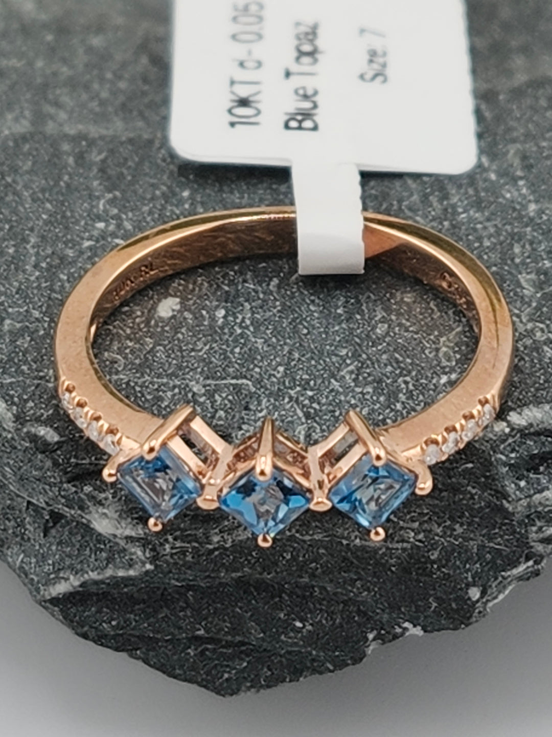 10K Rose Gold Diamond and Blue Topaz Ring