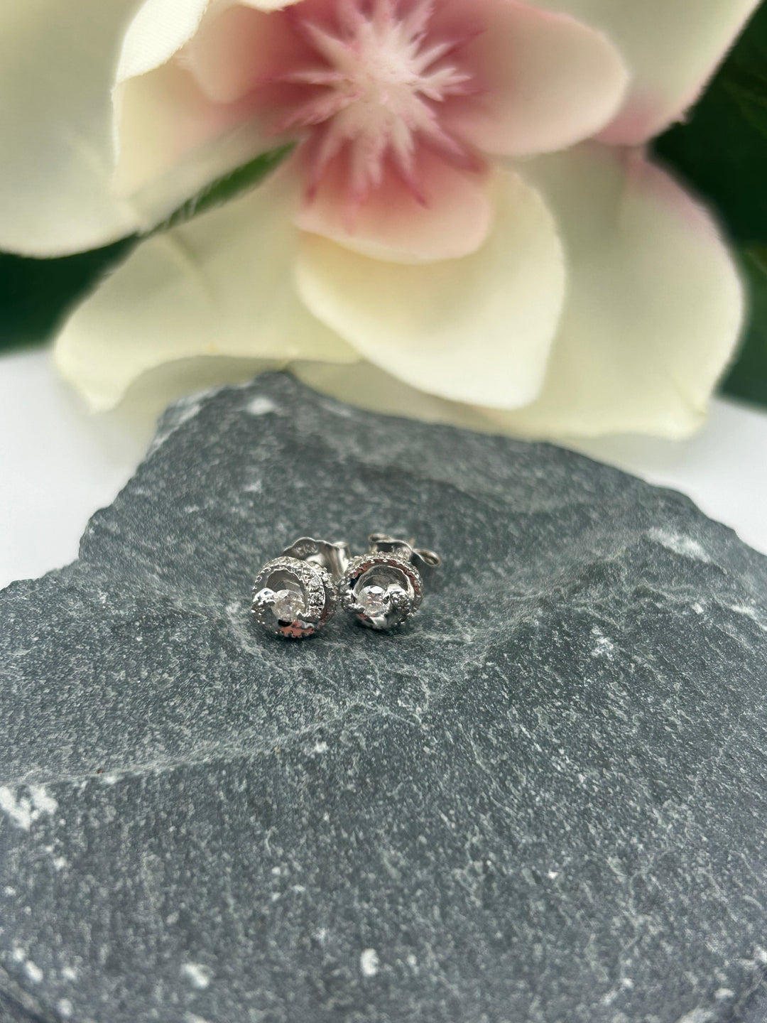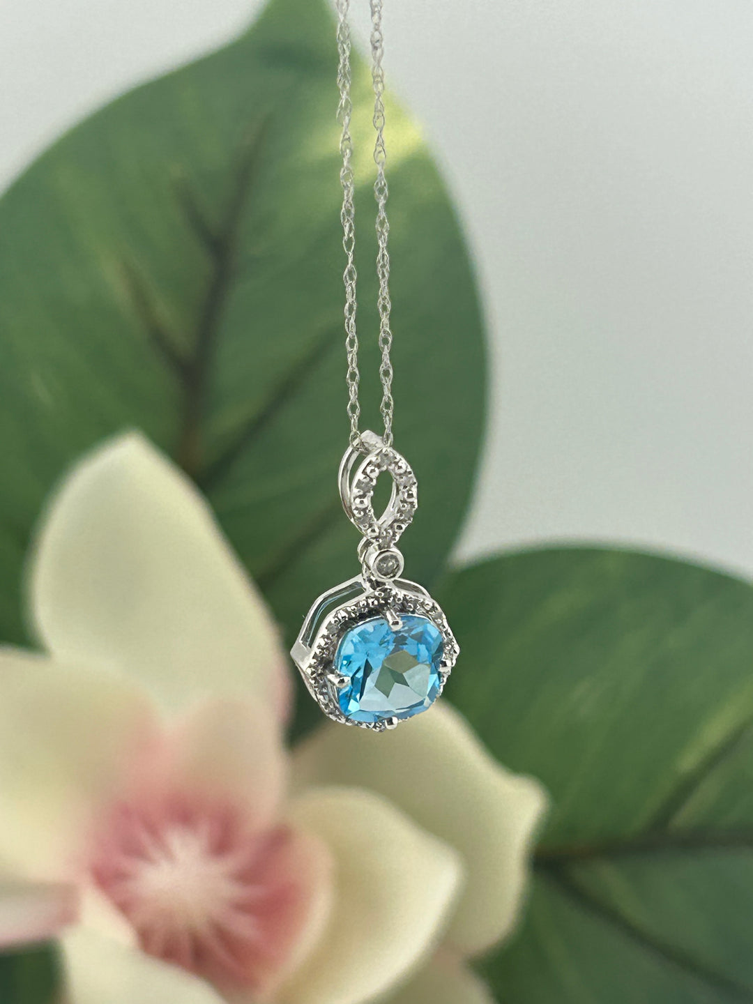 10K White Gold Diamond & Blue Topaz Post-back Earrings