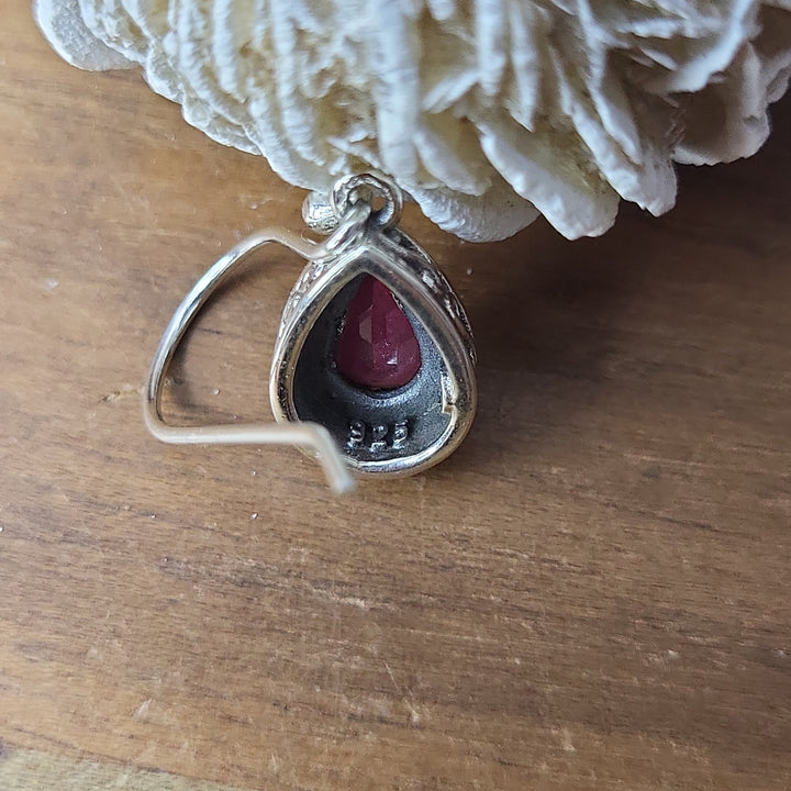Introducing our exquisite collection of faceted natural treated Ruby 925 Sterling Silver teardrop dangle earrings, a true embodiment of opulence and elegance. Crafted with utmost precision, these earrings showcase the mesmerizing beauty of genuine rubies, carefully cut into faceted shapes to enhance their natural radiance.