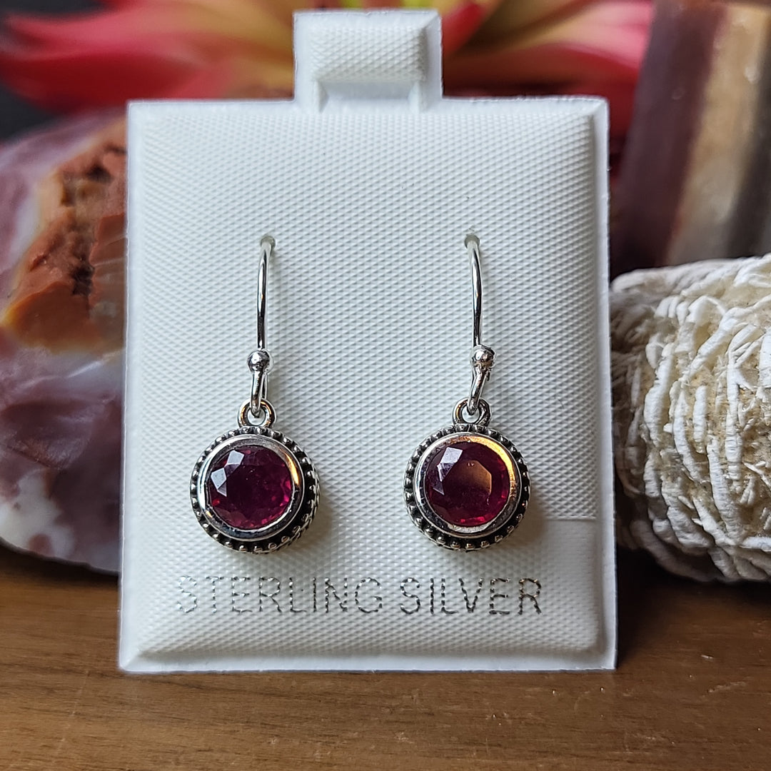 Natural Treated Ruby 925 Sterling Silver - Round Dangles